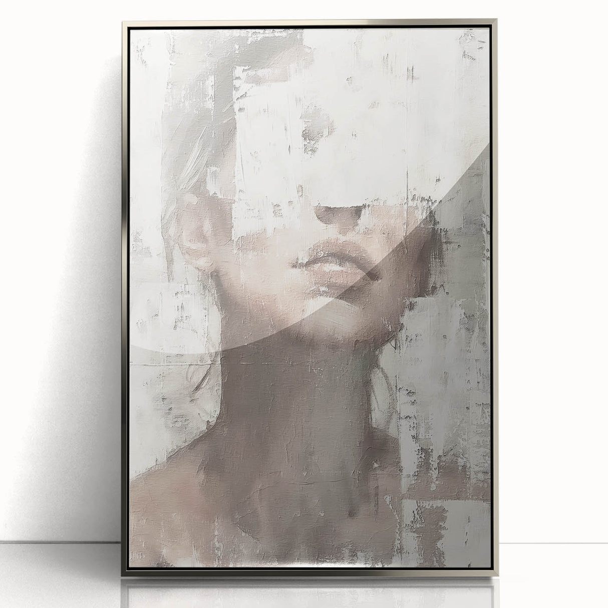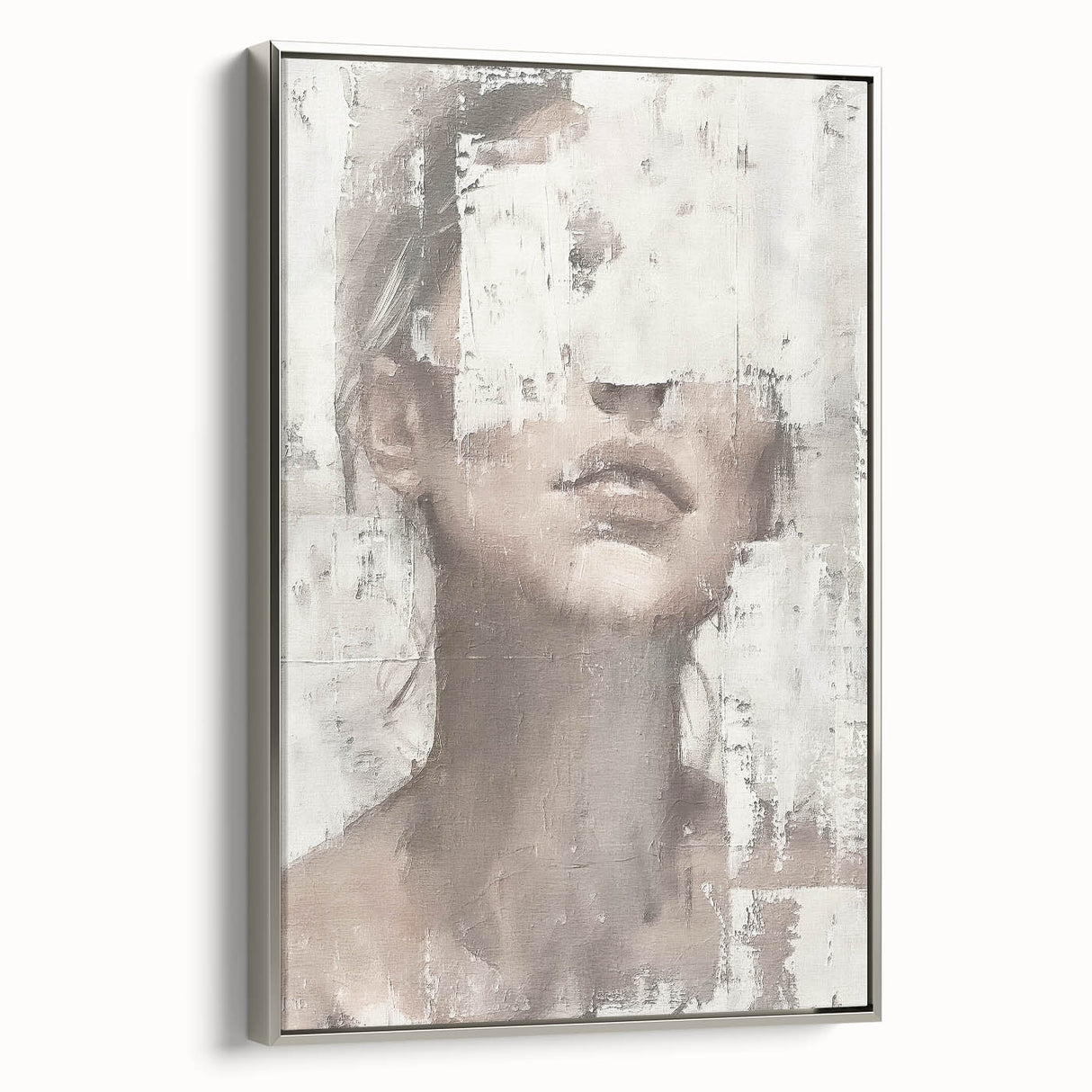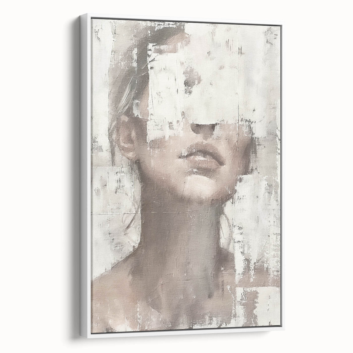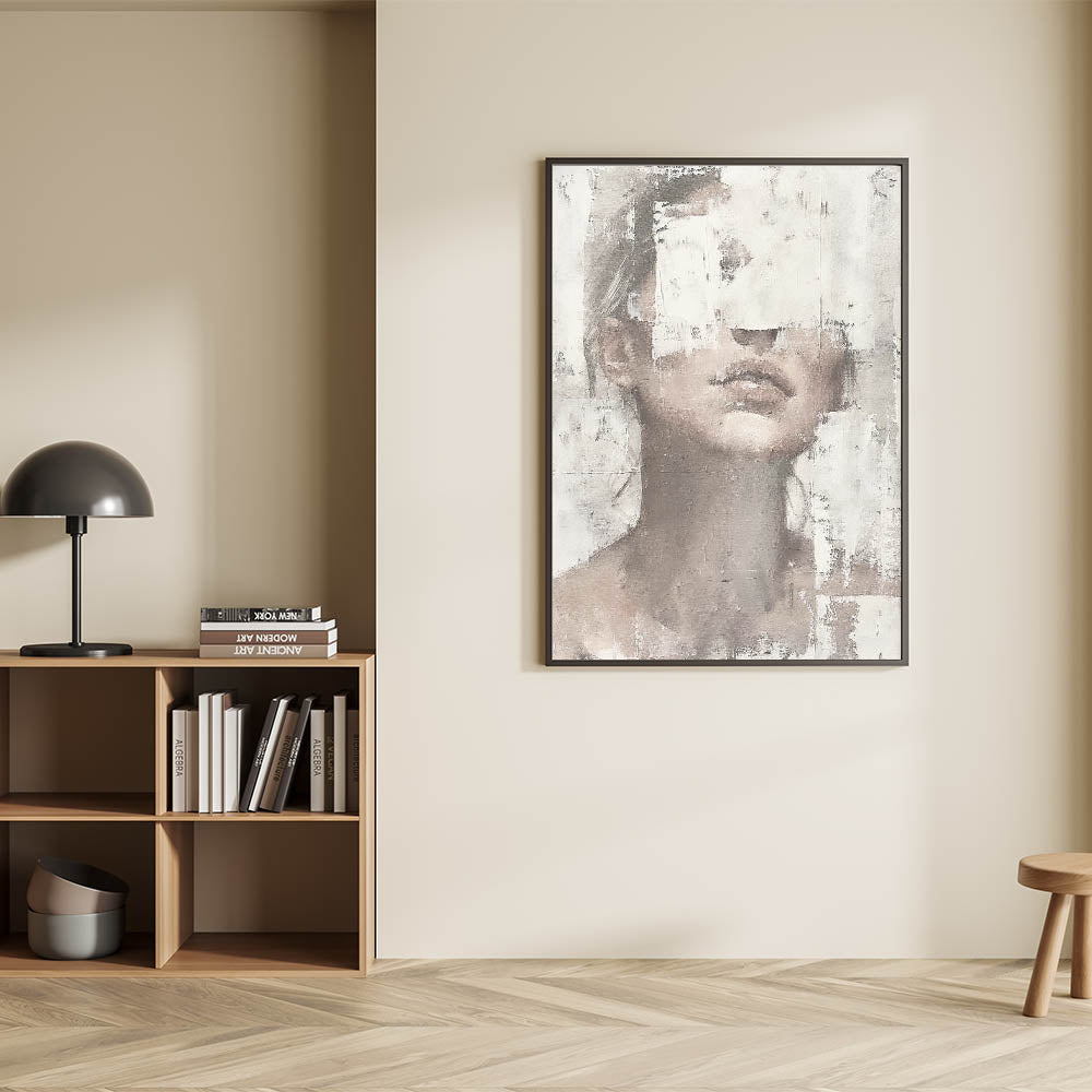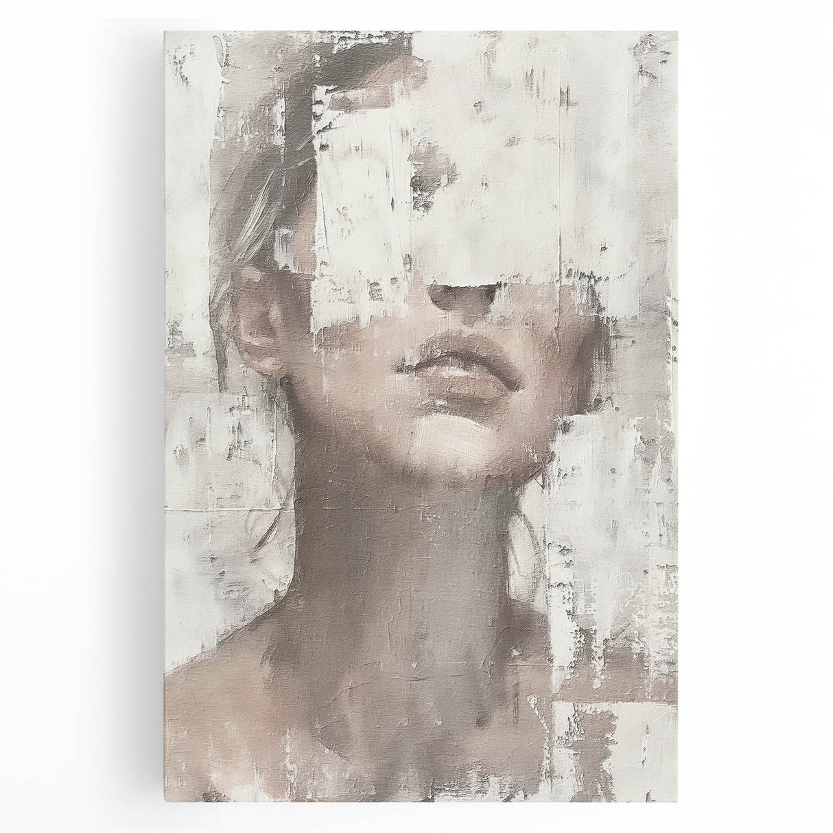 Enhance your decor with this modern figurative abstract art piece, blending the subtlety of human expression with abstract brushstrokes. Part of our Abstracts collection, this artwork captures a serene, introspective moment, with soft gray and beige tones that evoke a calm, contemporary feel. Ideal for minimalist and modern interiors, this unique piece of wall art brings sophistication and depth to any room.