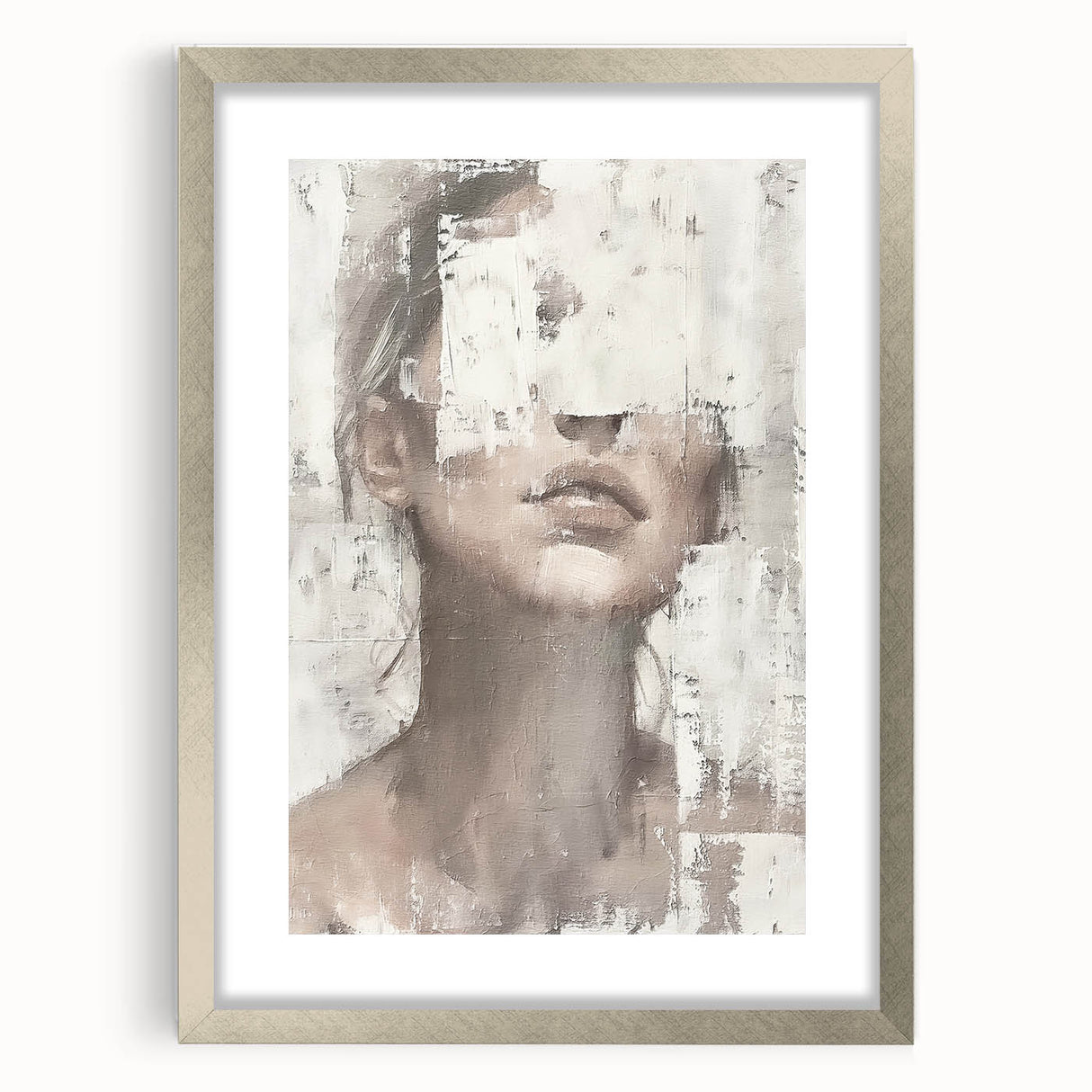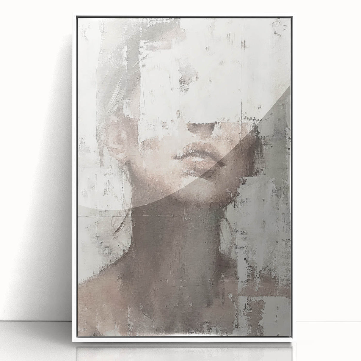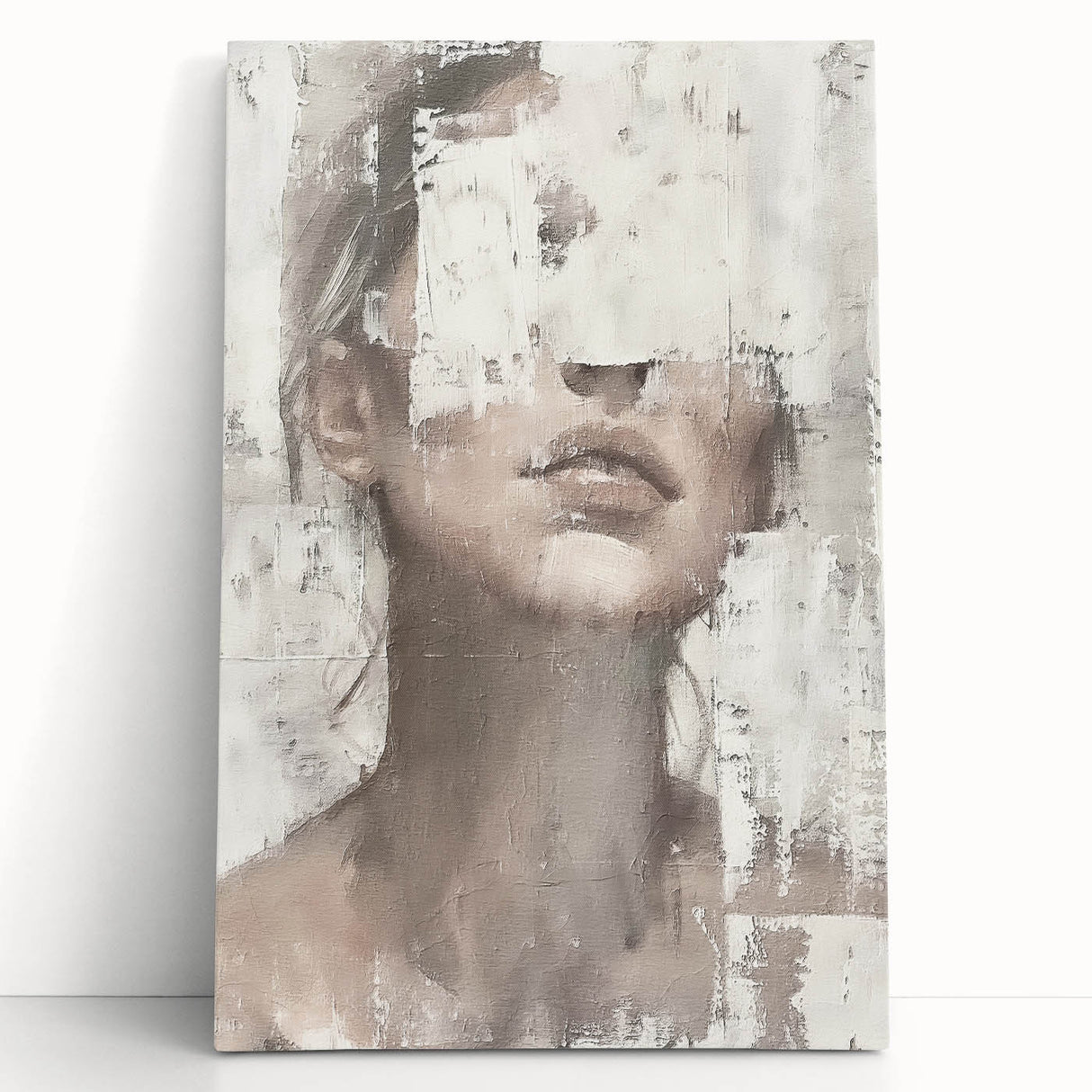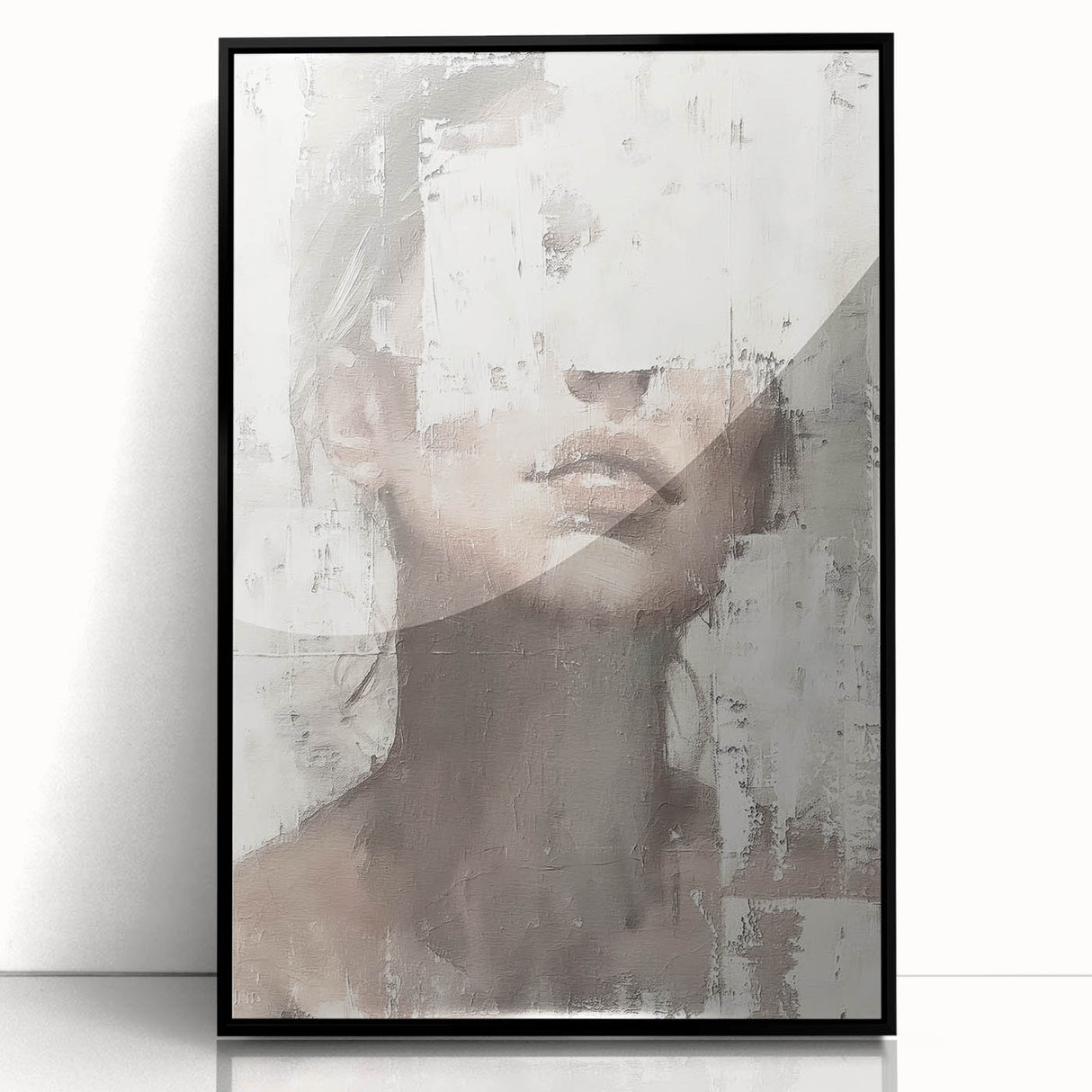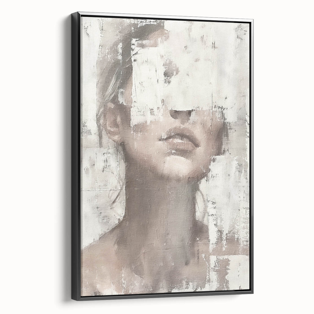 Enhance your decor with this modern figurative abstract art piece, blending the subtlety of human expression with abstract brushstrokes. Part of our Abstracts collection, this artwork captures a serene, introspective moment, with soft gray and beige tones that evoke a calm, contemporary feel. Ideal for minimalist and modern interiors, this unique piece of wall art brings sophistication and depth to any room.