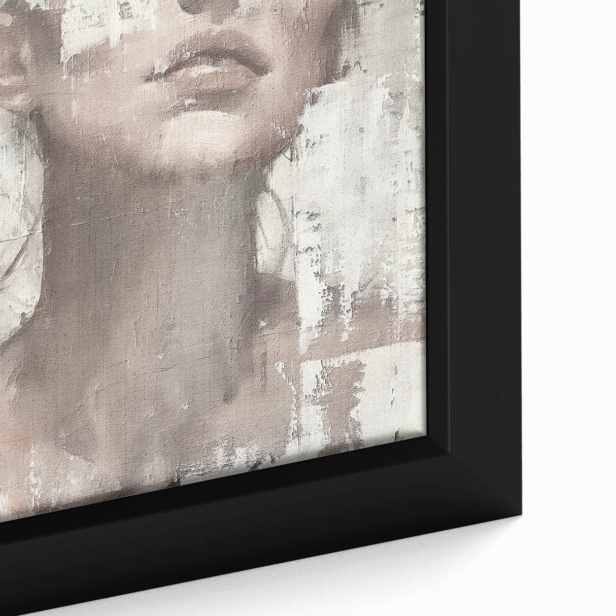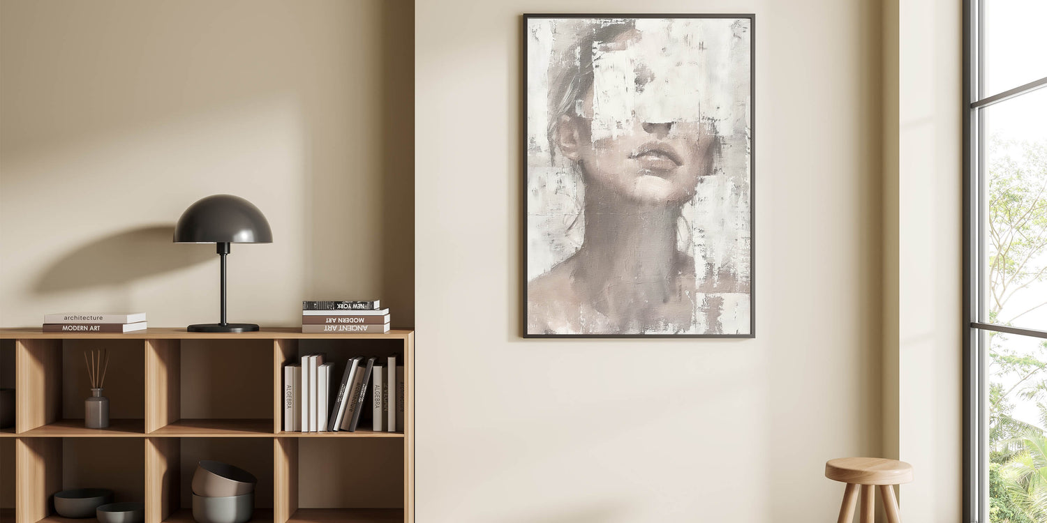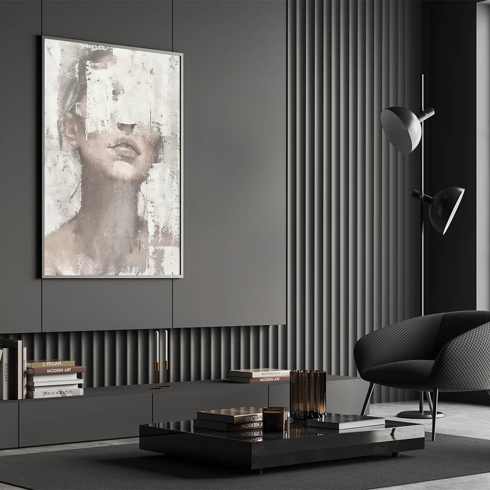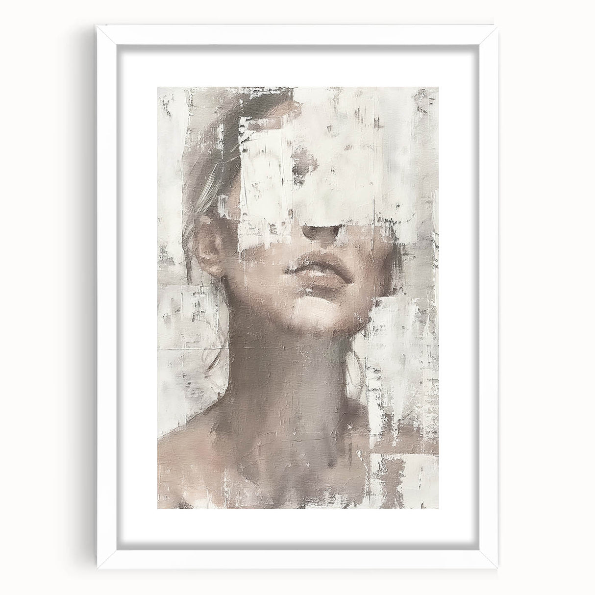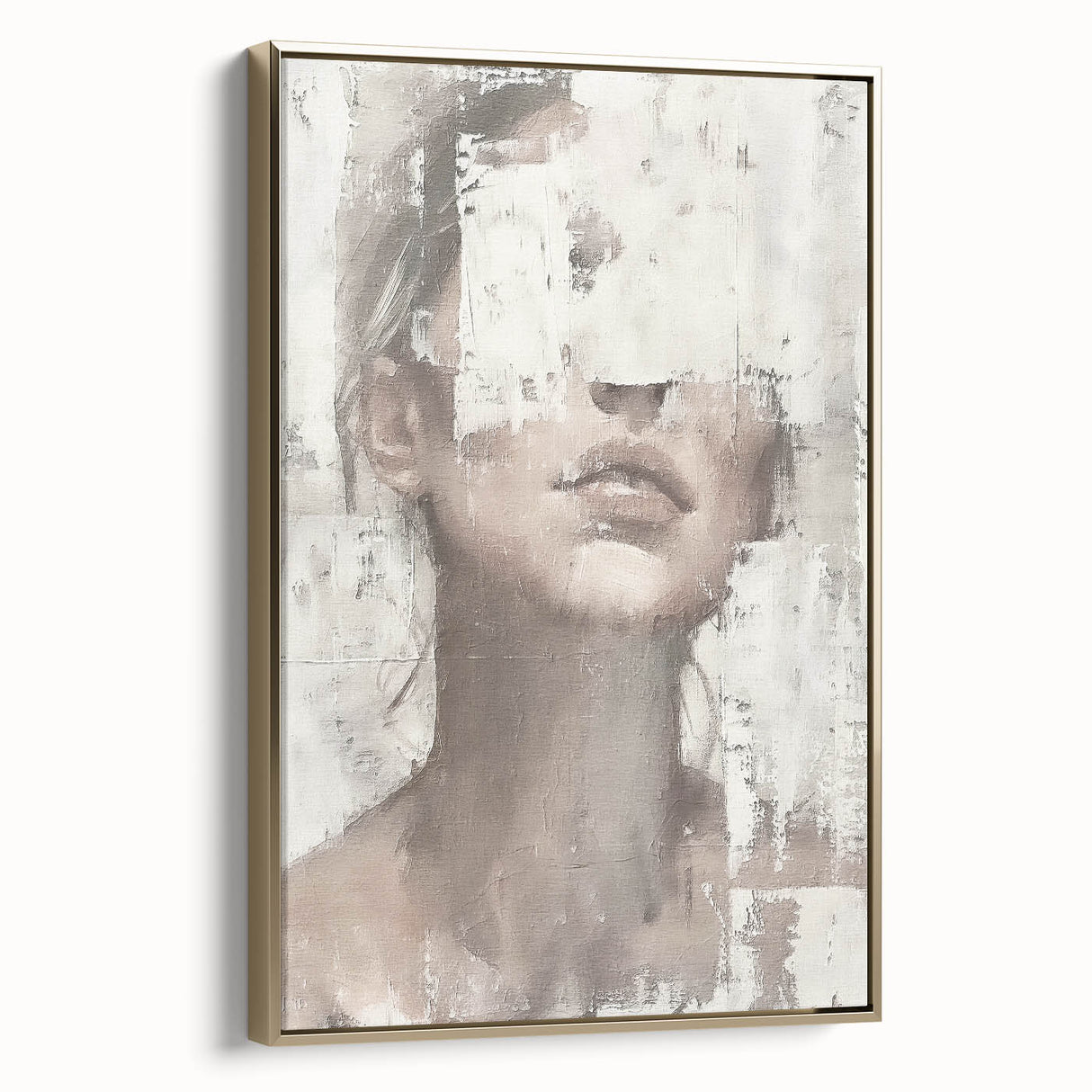 Enhance your decor with this modern figurative abstract art piece, blending the subtlety of human expression with abstract brushstrokes. Part of our Abstracts collection, this artwork captures a serene, introspective moment, with soft gray and beige tones that evoke a calm, contemporary feel. Ideal for minimalist and modern interiors, this unique piece of wall art brings sophistication and depth to any room.
