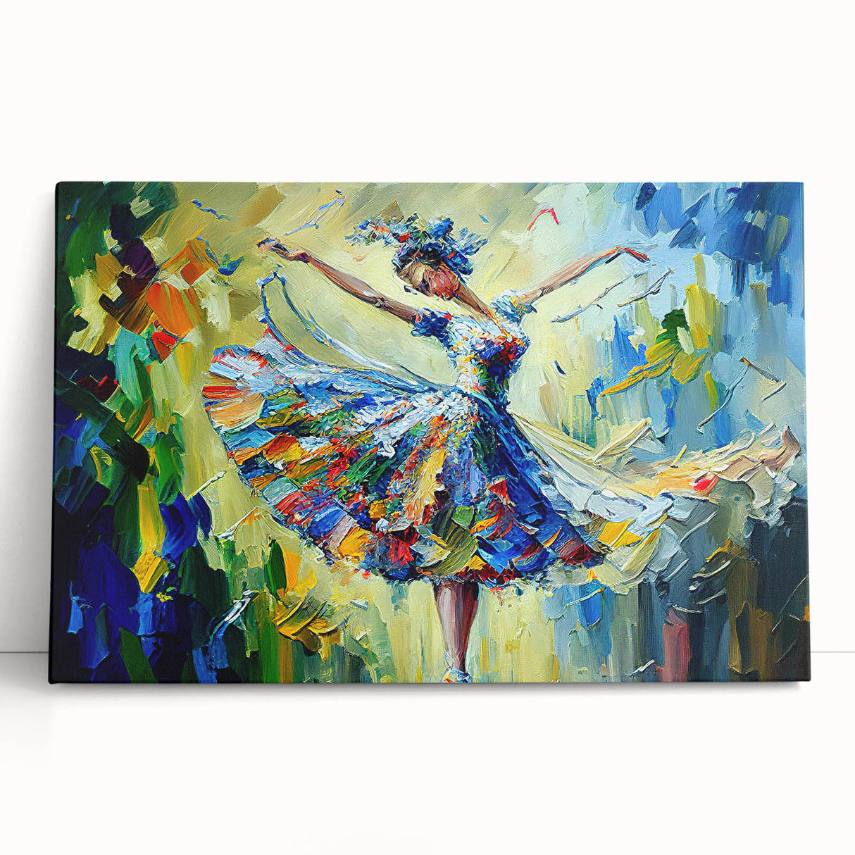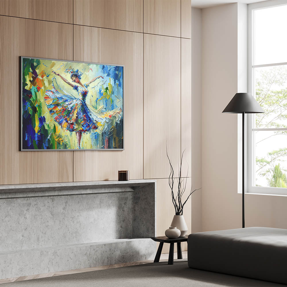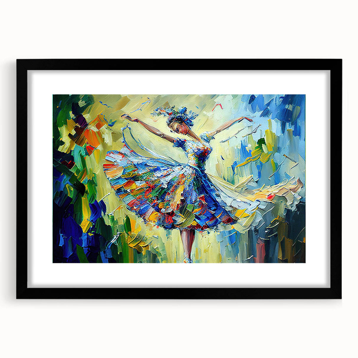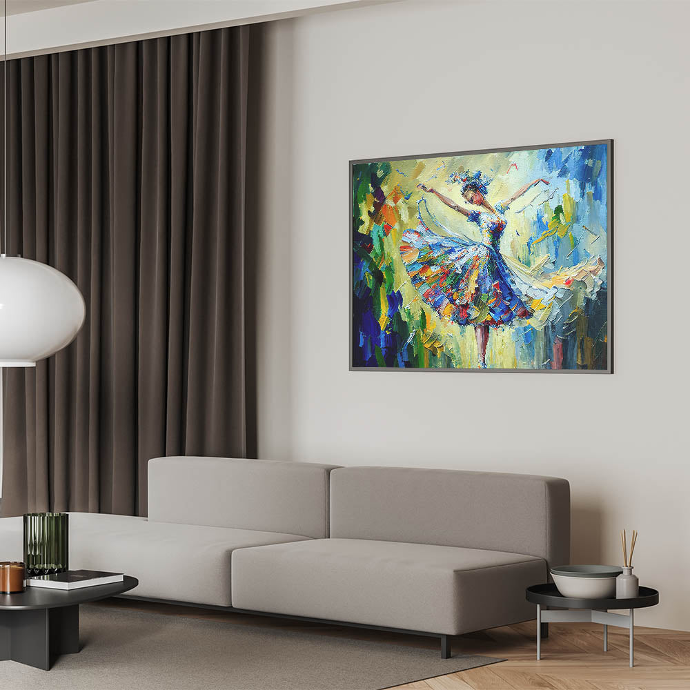 Whether you're decorating your home or looking for a unique gift, this colorful figurative abstract art piece will add a touch of elegance and movement to any space. The vibrant portrayal of the ballerina against an abstract background brings a sense of beauty and energy to your decor.