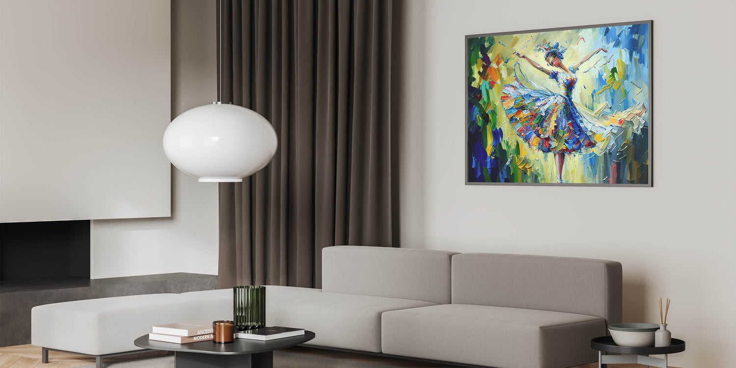- High-quality materials: Available in stretched canvas, framed canvas, acrylic glass, framed acrylic glass, framed print, rolled canvas, and rolled print.