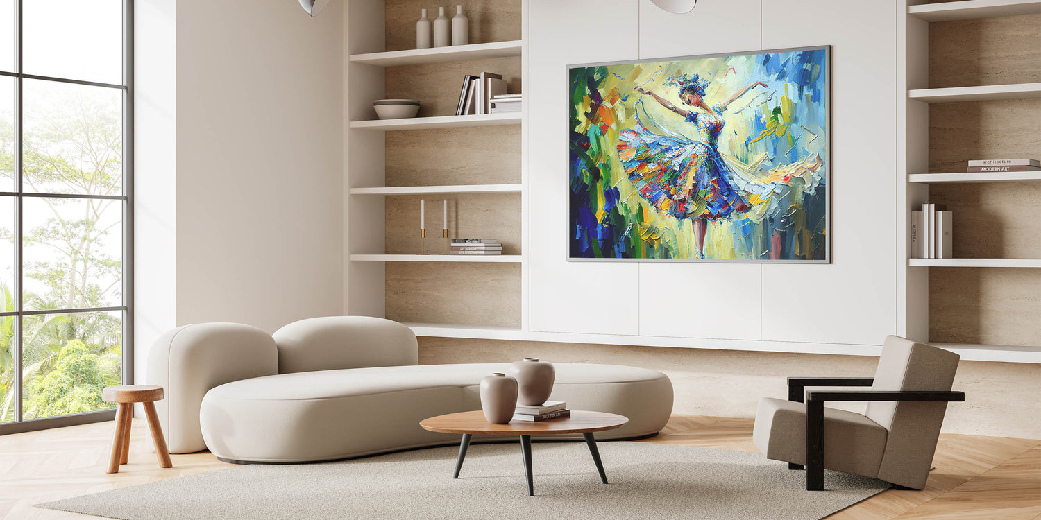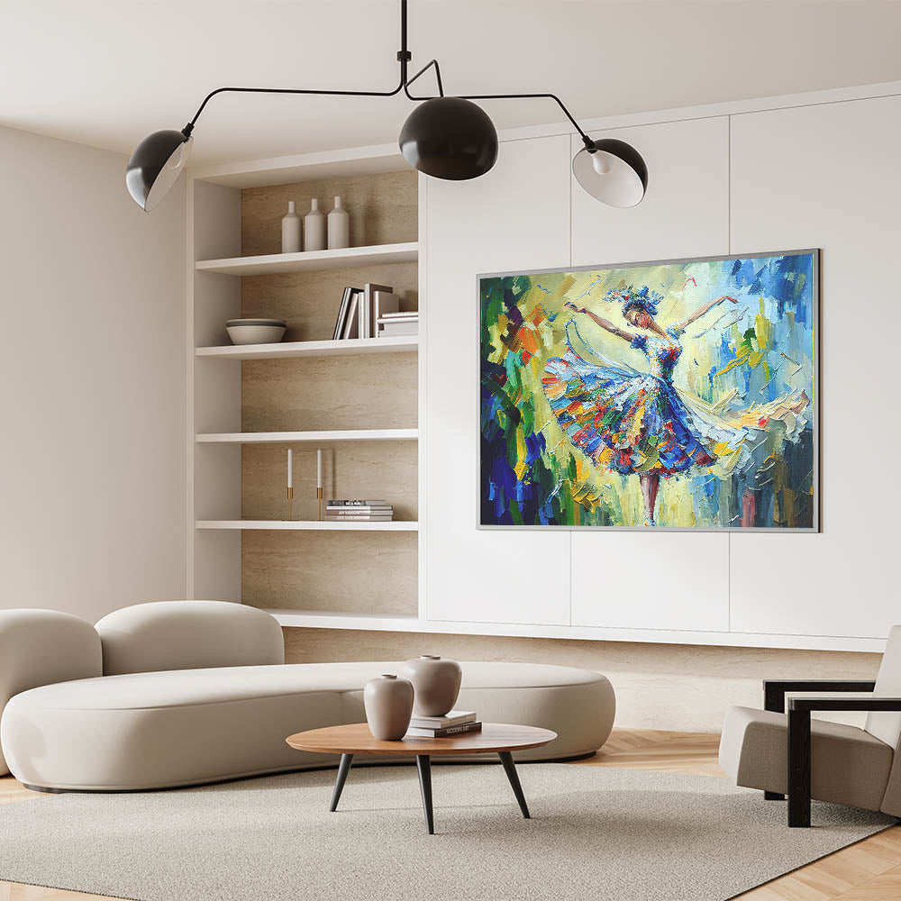 Bring the elegance and energy of dance into your home with our "Modern Figurative Abstract Wall Art - Colorful Dancing Ballerina Print." This captivating artwork captures the grace and movement of a ballerina in vibrant, abstract strokes. The dynamic use of colors and textures creates a lively and enchanting piece, perfect for any art lover's collection.