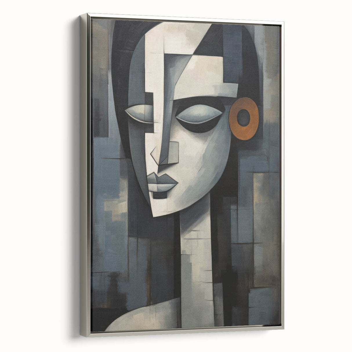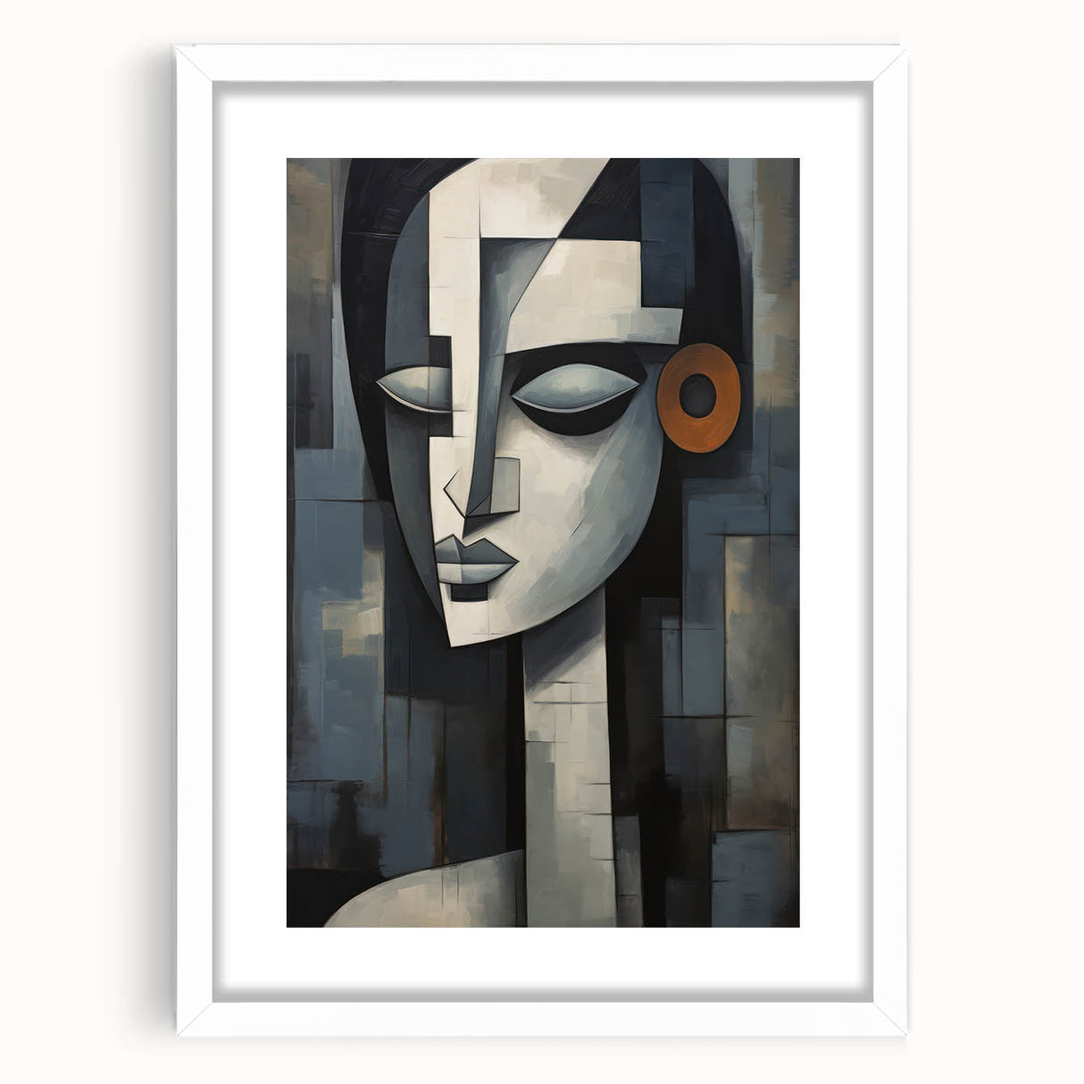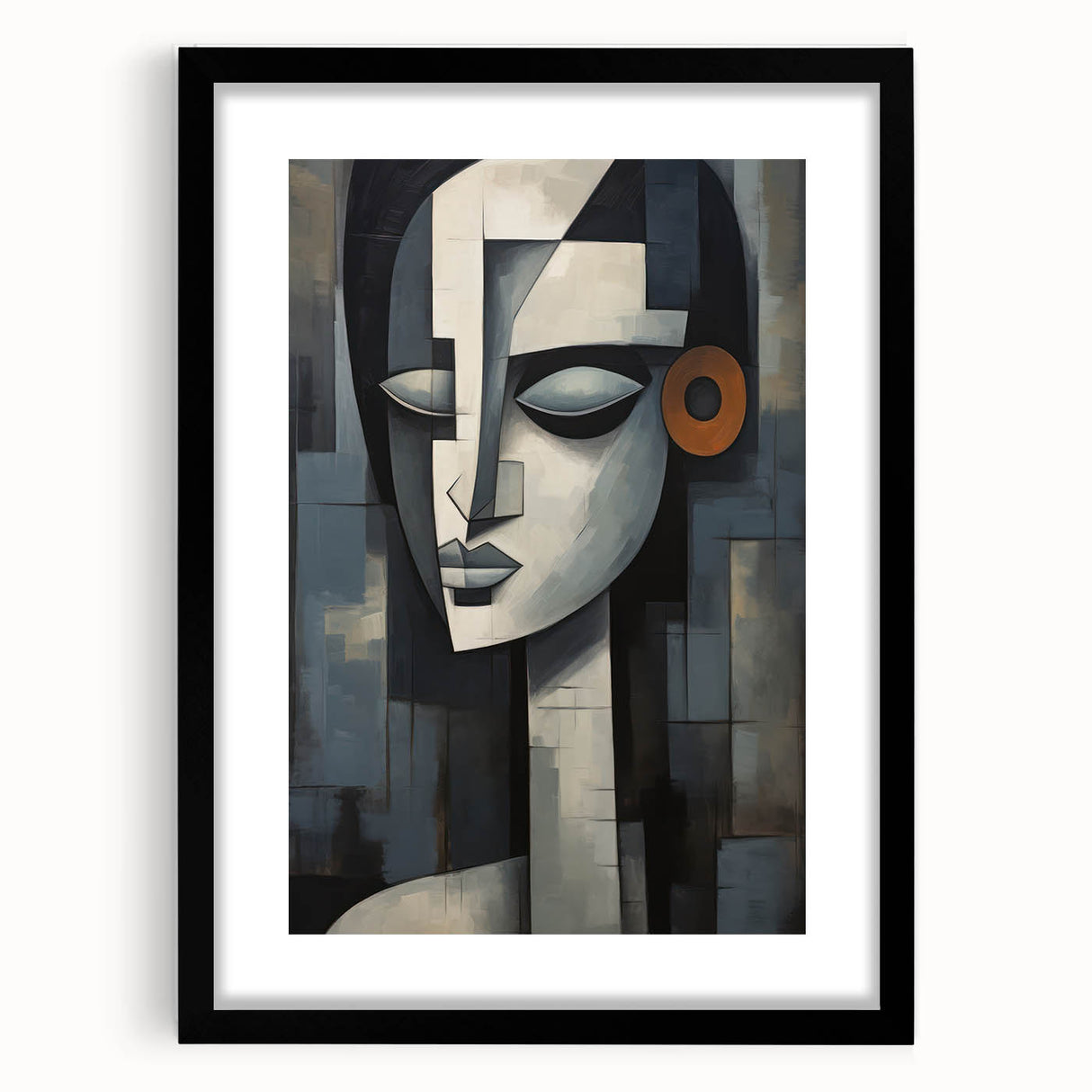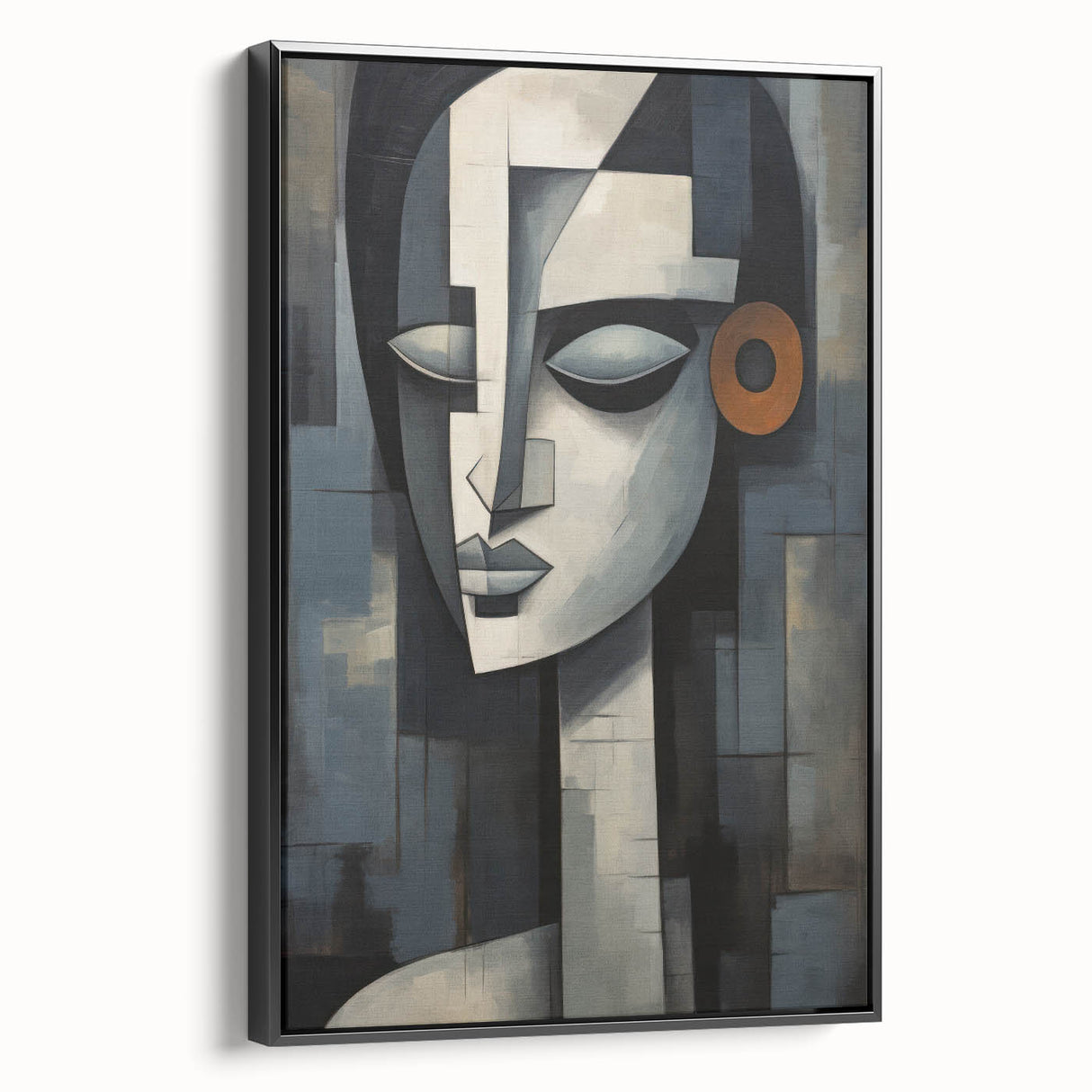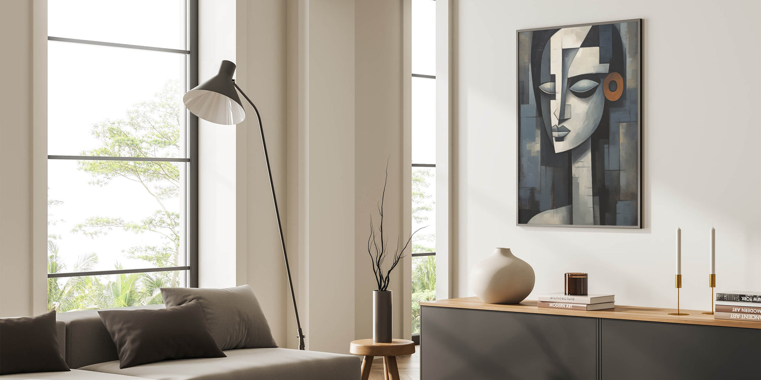 This contemporary figurative wall art is more than just decoration; it’s a piece that adds depth and character to your interior. The geometric composition and serene expression make it a perfect addition to any modern or eclectic decor. Choose a framed print or a rolled canvas to enhance your space with this captivating artwork.
