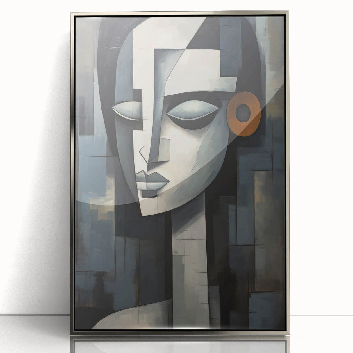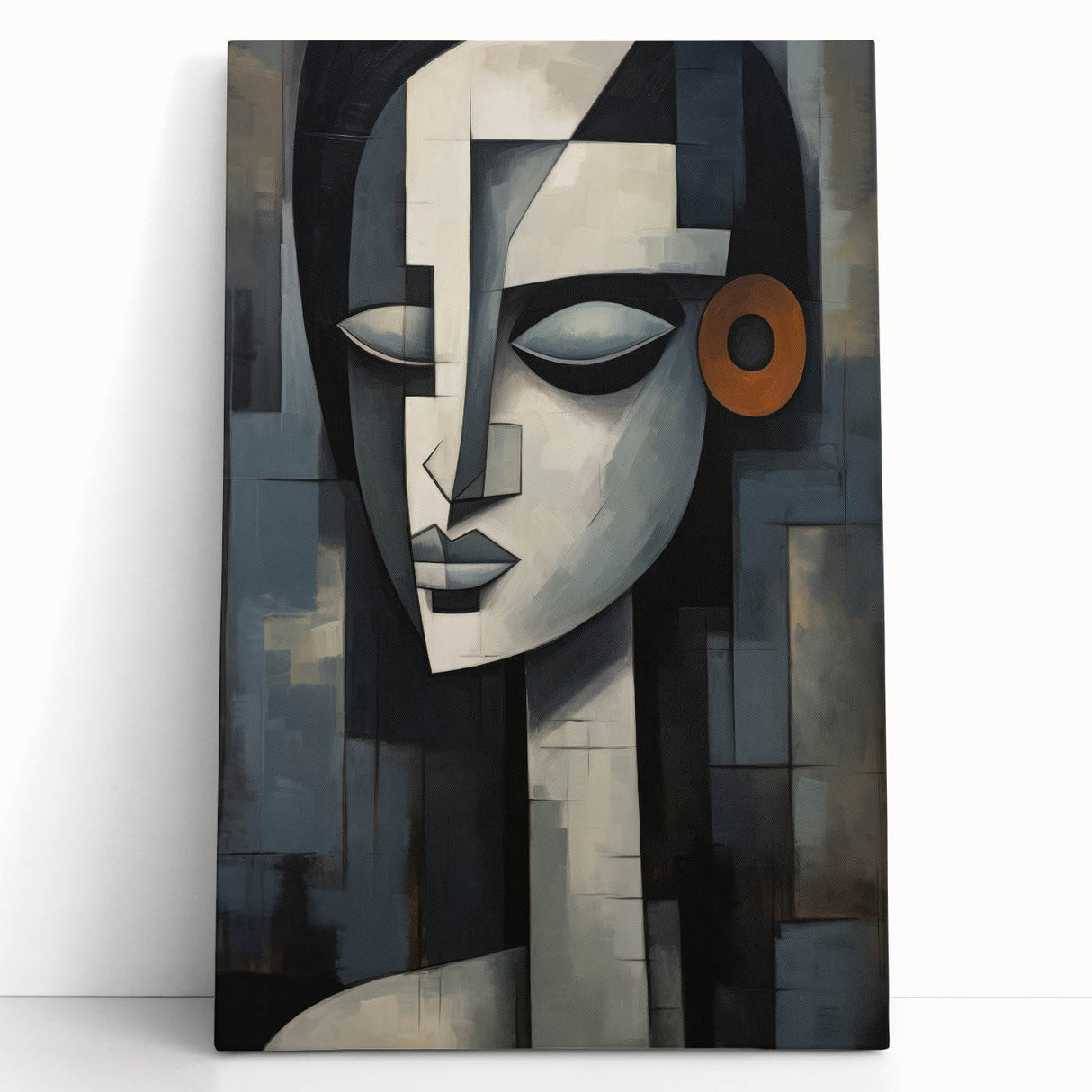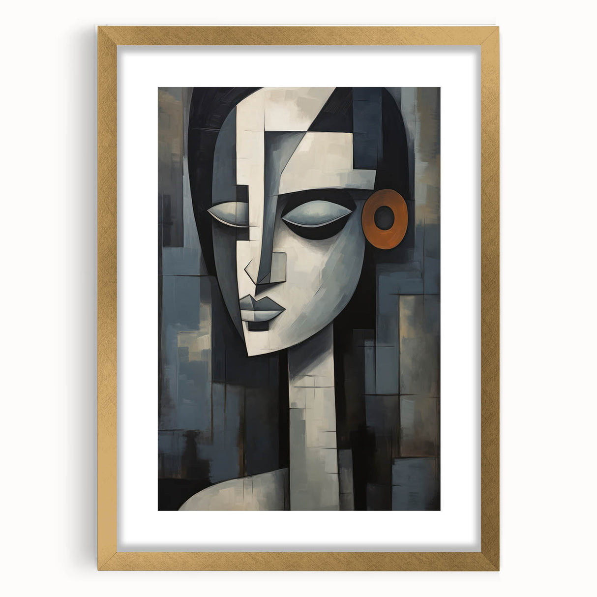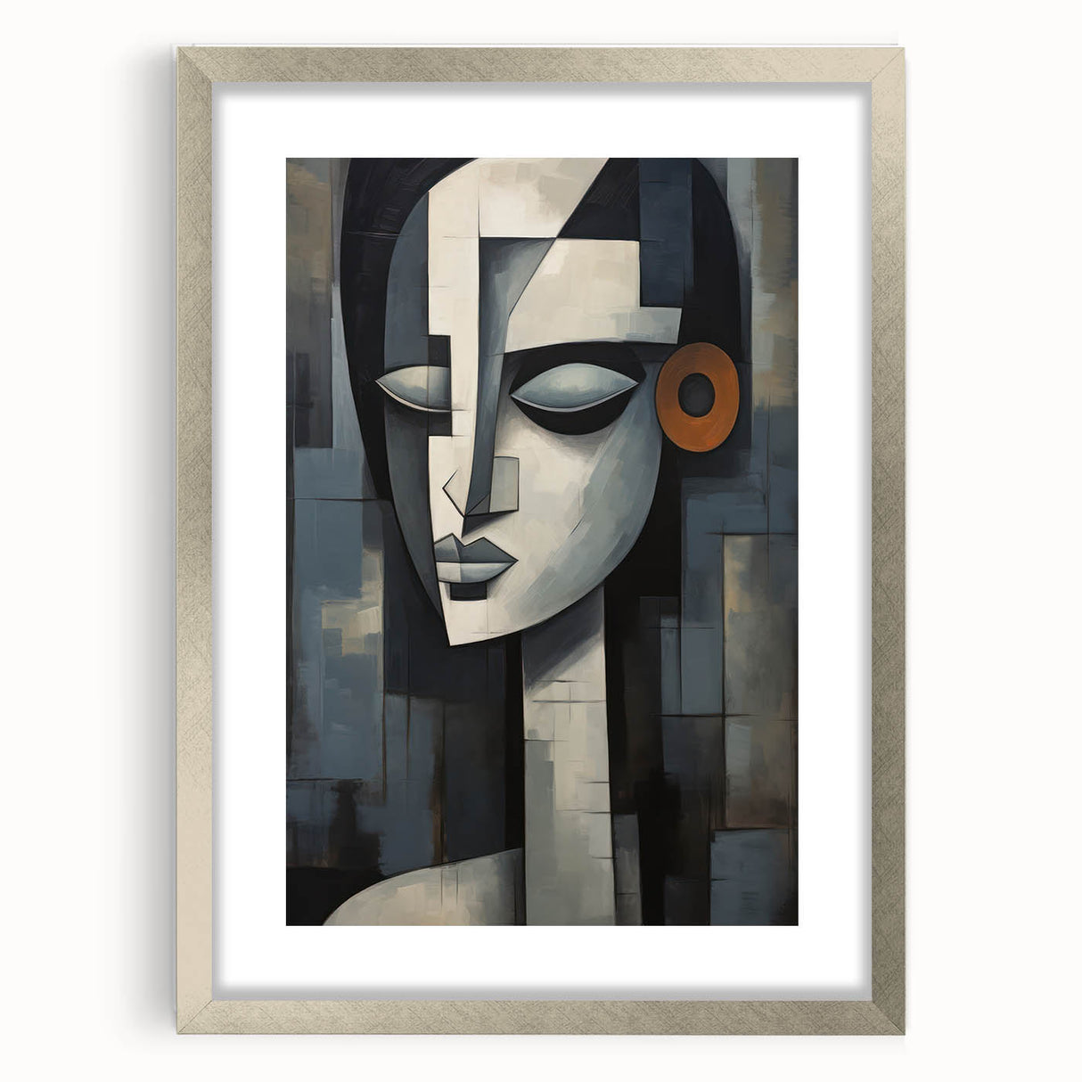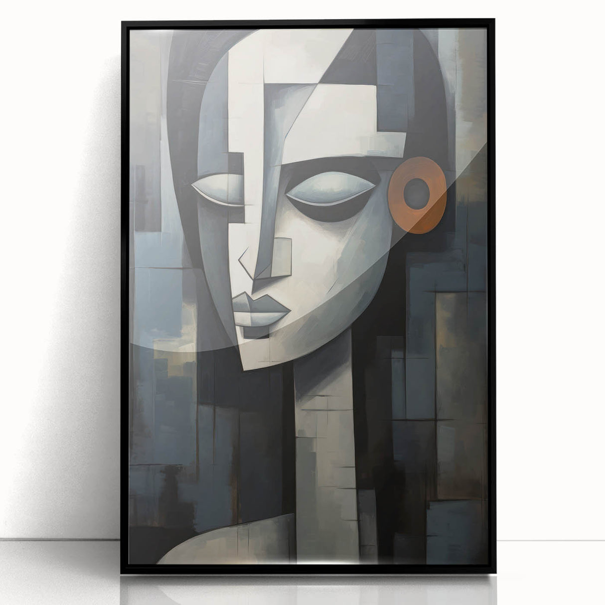 This contemporary figurative wall art is more than just decoration; it’s a piece that adds depth and character to your interior. The geometric composition and serene expression make it a perfect addition to any modern or eclectic decor. Choose a framed print or a rolled canvas to enhance your space with this captivating artwork.