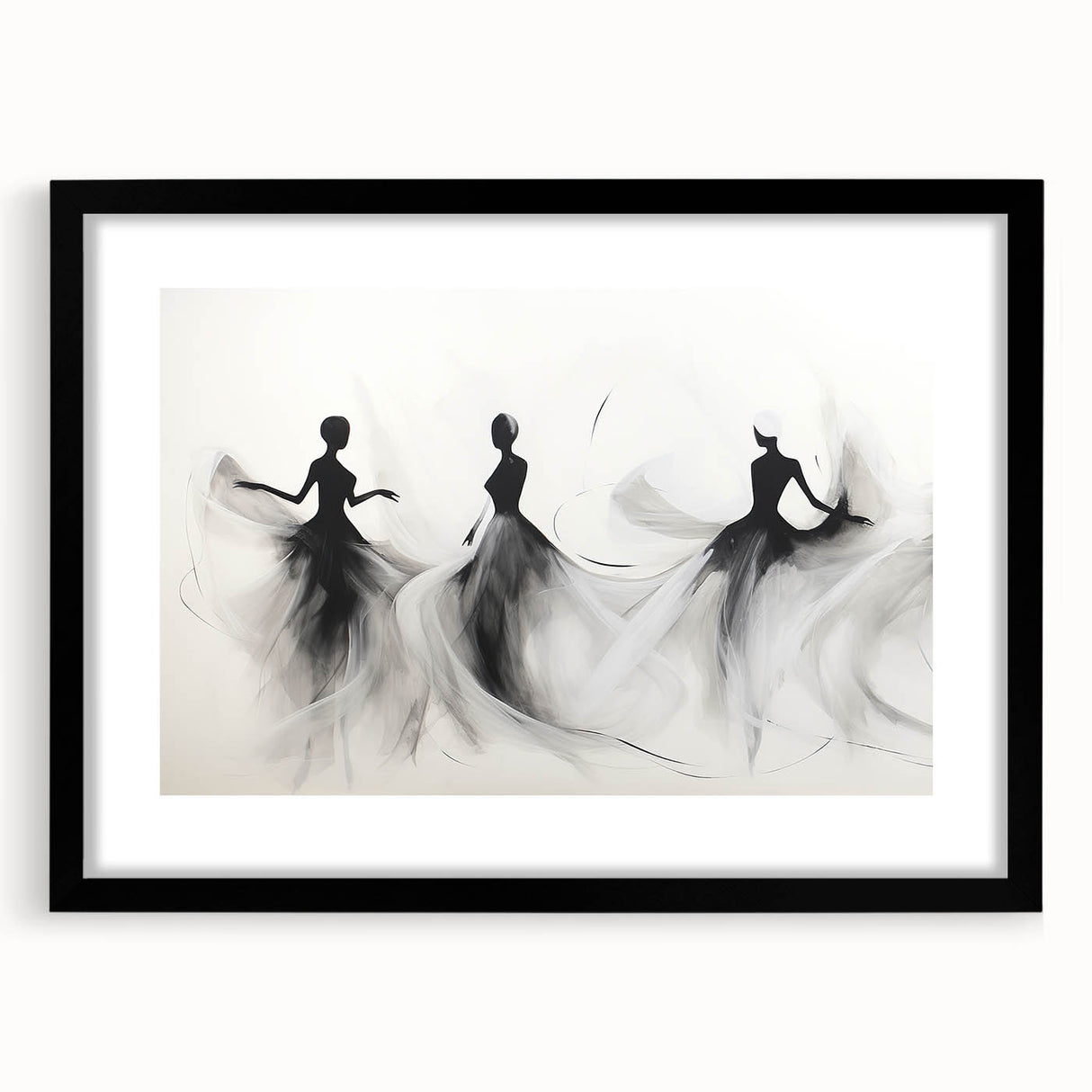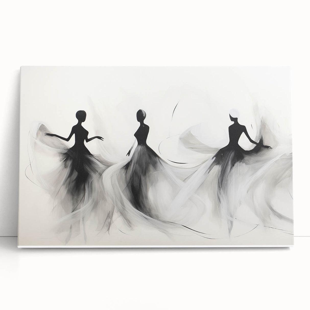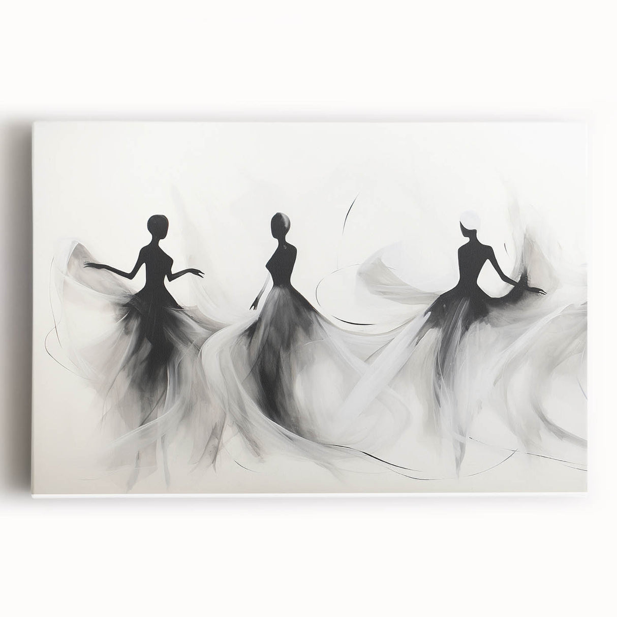 Enhance your home decor with our "Modern Monochrome Figurative Abstract Wall Art - Dancing Silhouettes." This elegant artwork features three abstract silhouettes of dancers, rendered in a striking black and white palette. The fluid lines and soft contrasts create a sense of movement and grace, making it a perfect piece for contemporary and modern interiors.