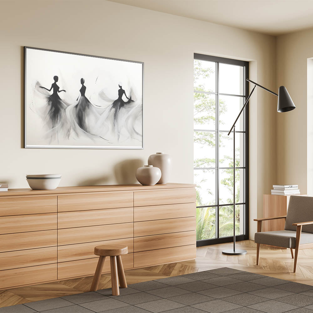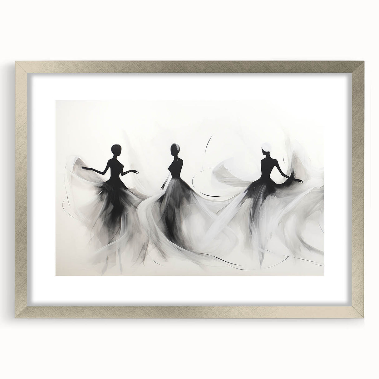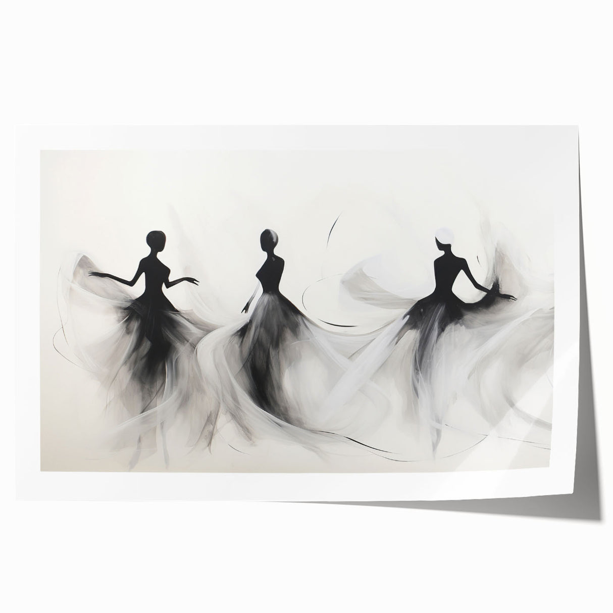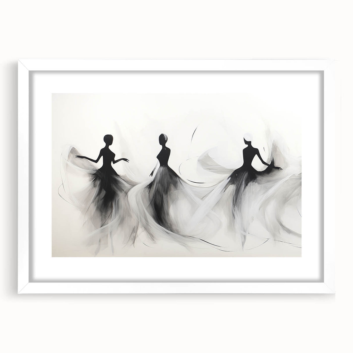 Enhance your home decor with our "Modern Monochrome Figurative Abstract Wall Art - Dancing Silhouettes." This elegant artwork features three abstract silhouettes of dancers, rendered in a striking black and white palette. The fluid lines and soft contrasts create a sense of movement and grace, making it a perfect piece for contemporary and modern interiors.