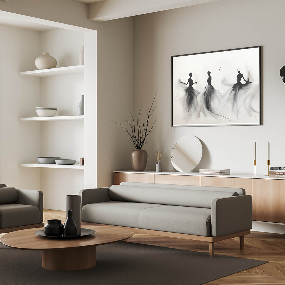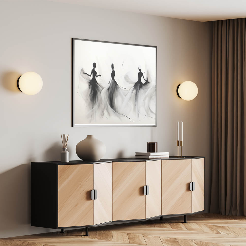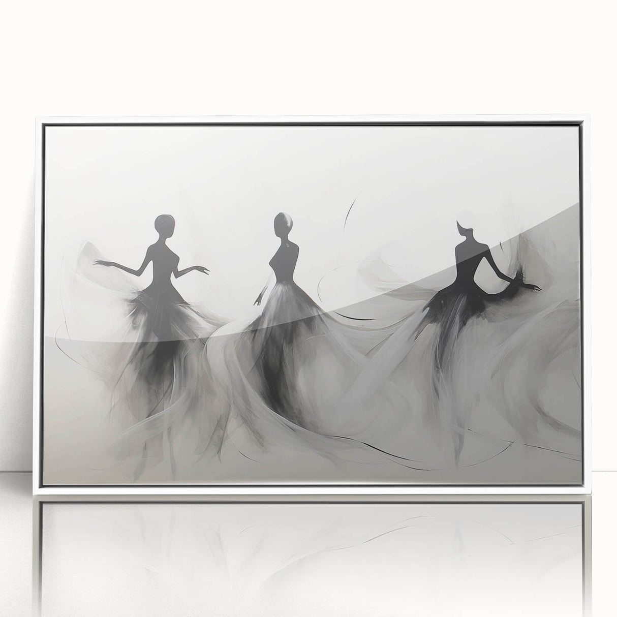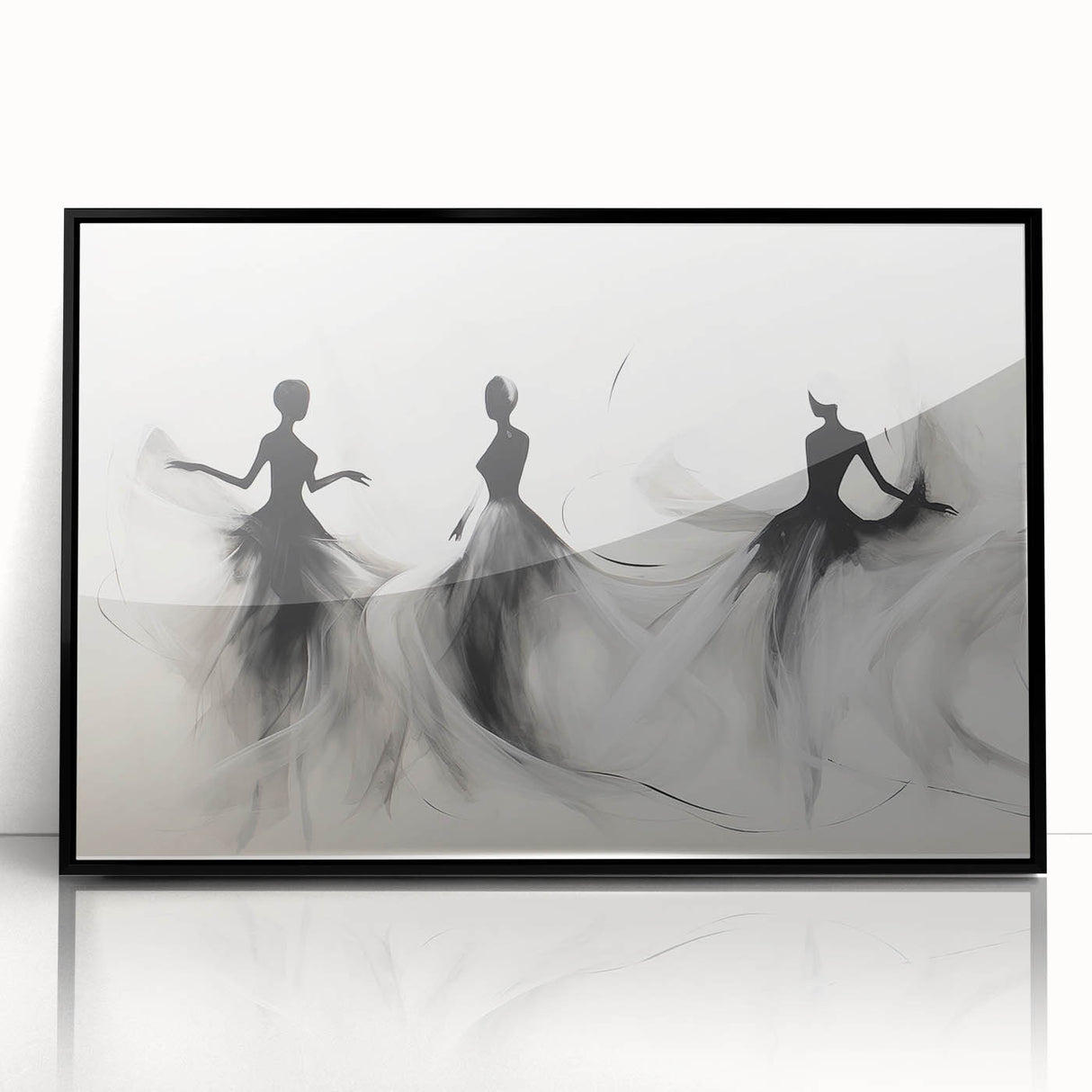 Enhance your home decor with our "Modern Monochrome Figurative Abstract Wall Art - Dancing Silhouettes." This elegant artwork features three abstract silhouettes of dancers, rendered in a striking black and white palette. The fluid lines and soft contrasts create a sense of movement and grace, making it a perfect piece for contemporary and modern interiors.