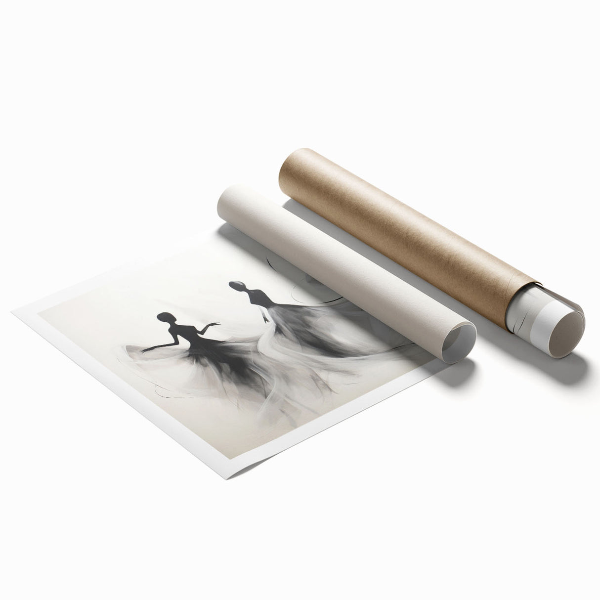 Modern Monochrome Figurative Abstract Wall Art - Dancing Silhouettes