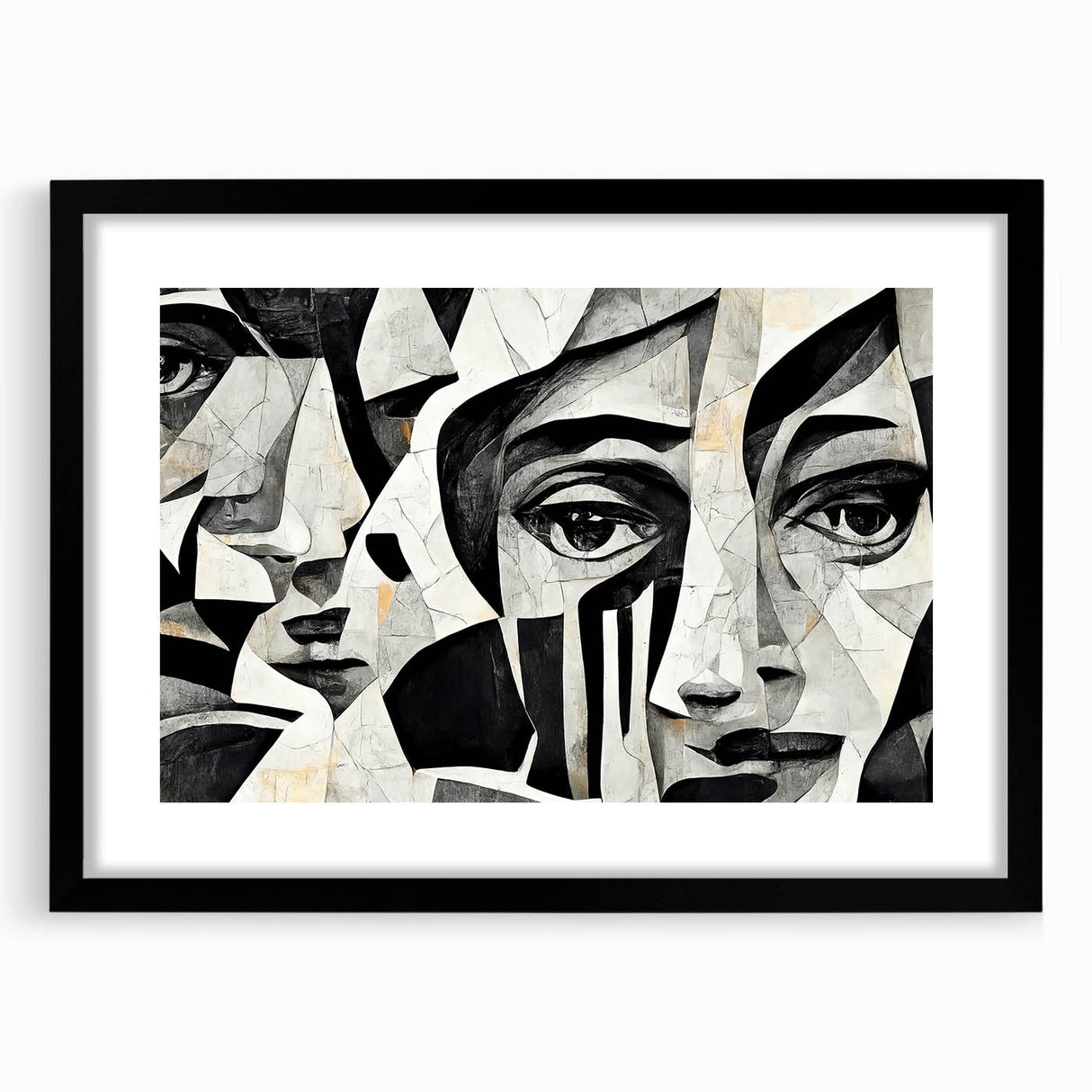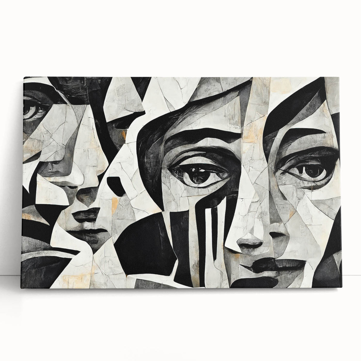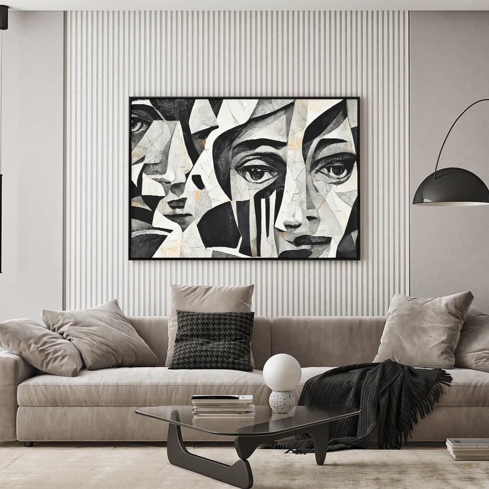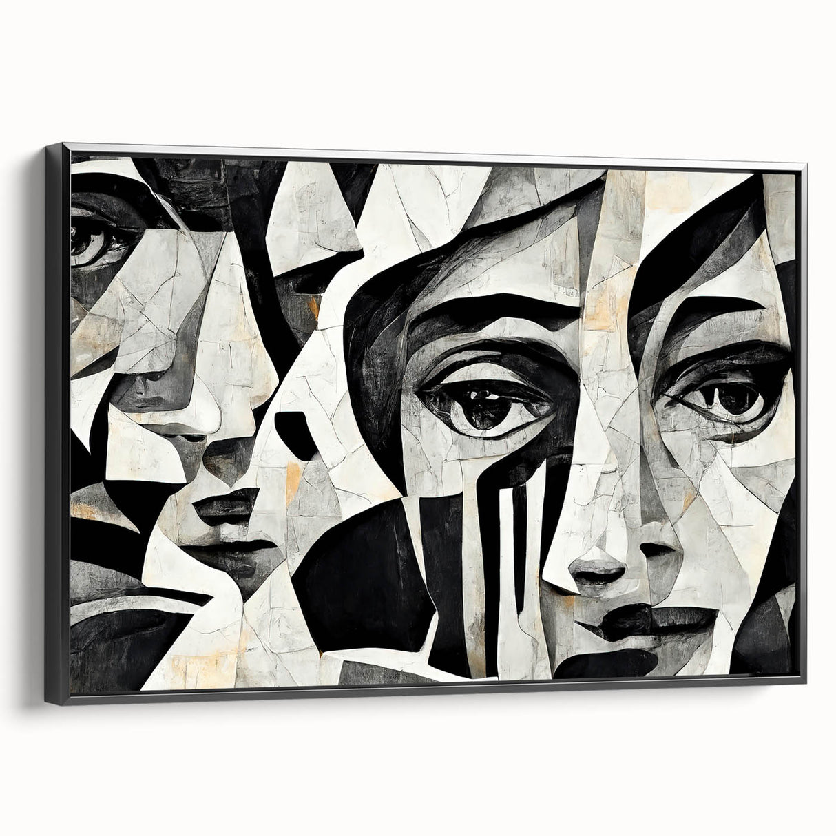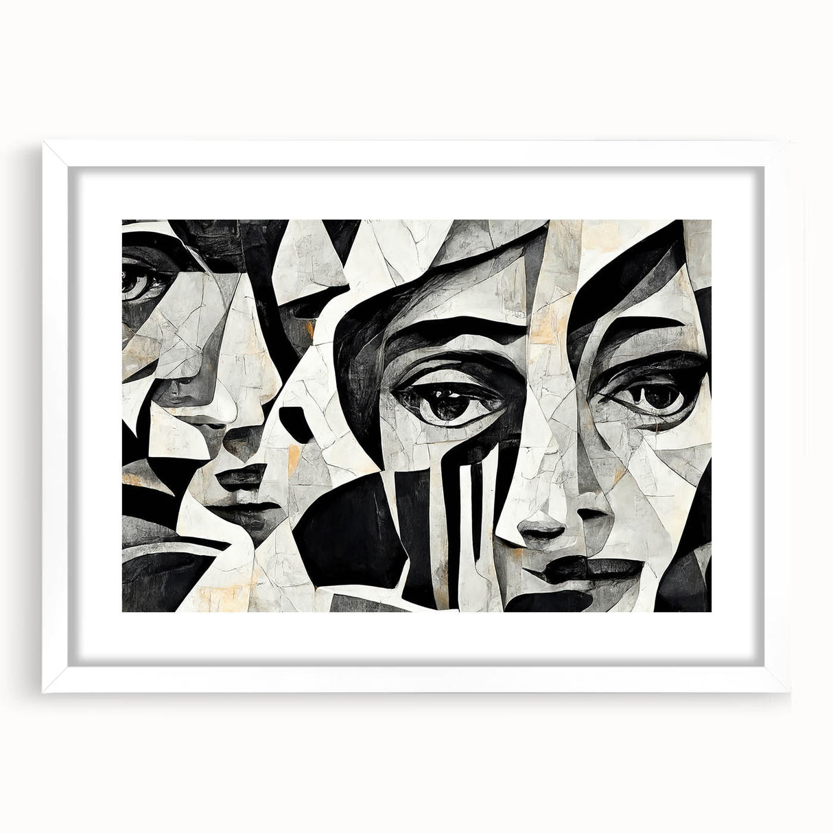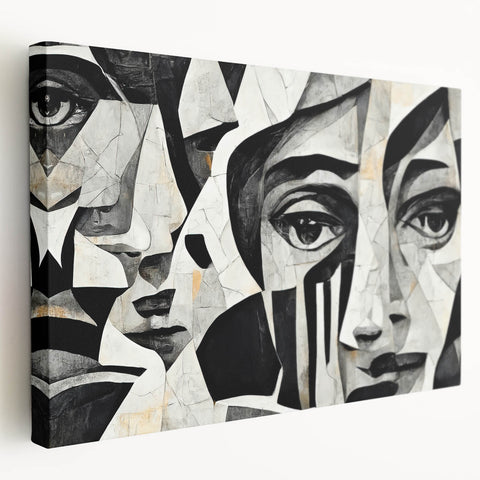 Modern Monochrome Figurative Abstract Wall Art - Faces in Black and White