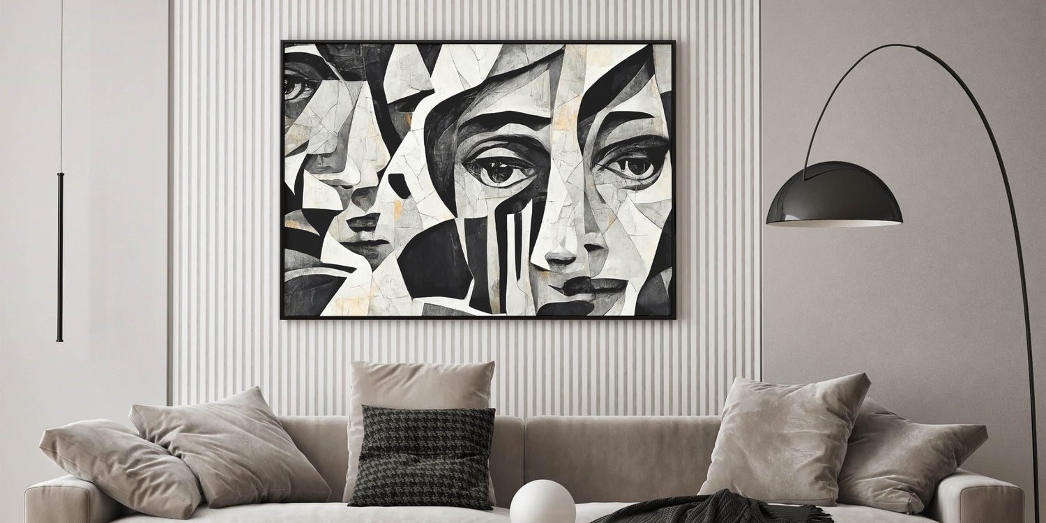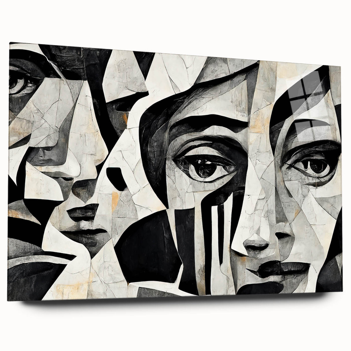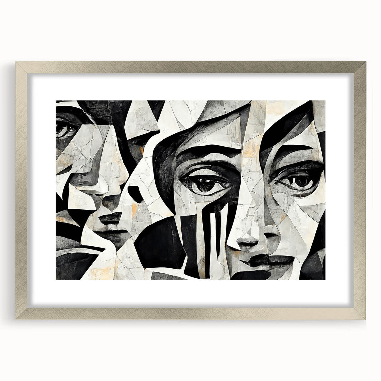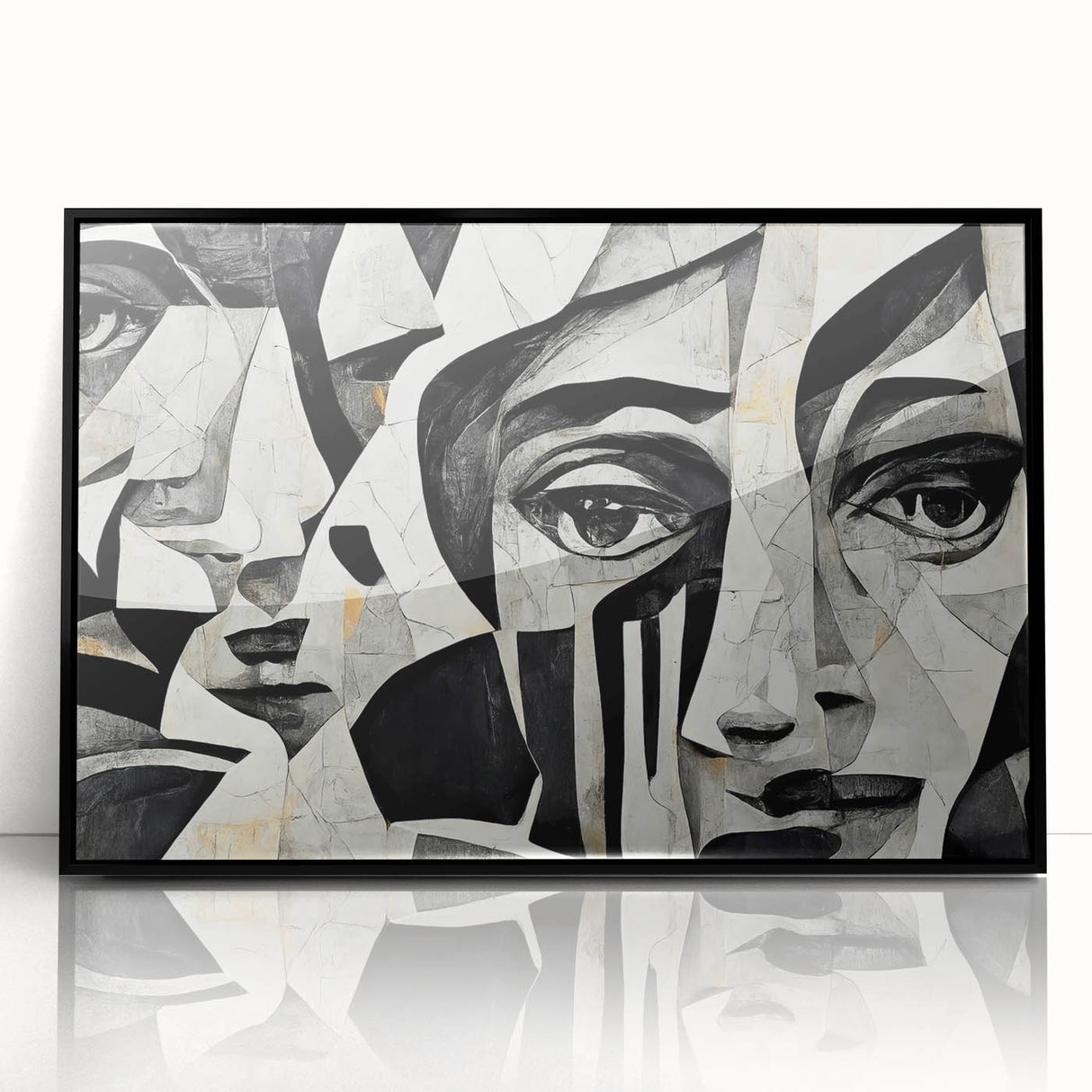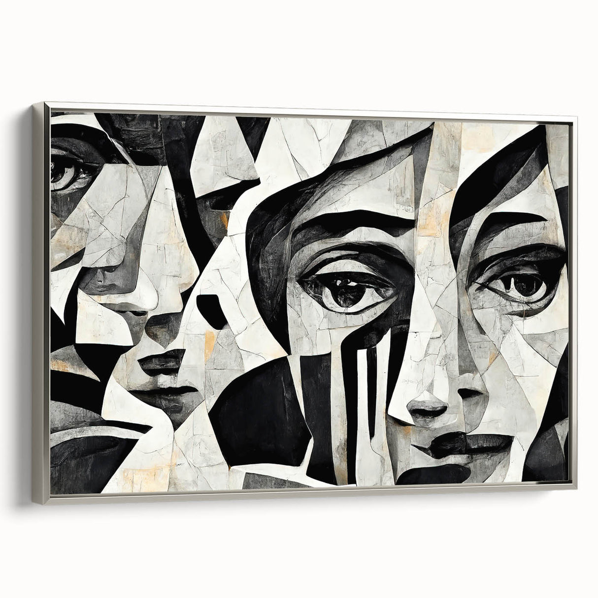 Modern Monochrome Figurative Abstract Wall Art - Faces in Black and White