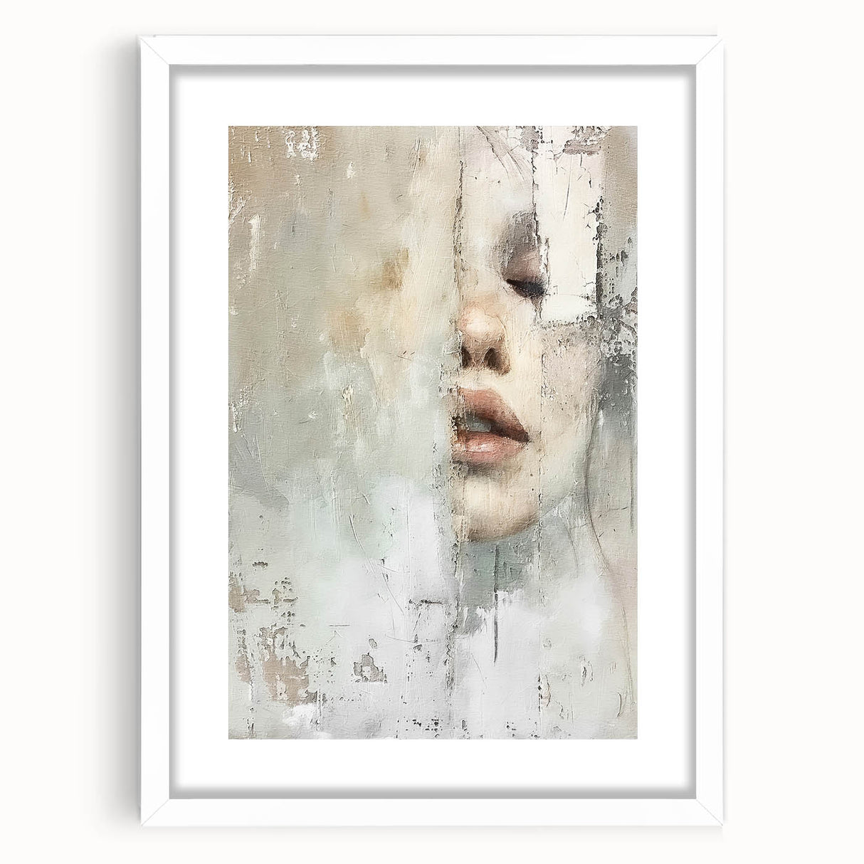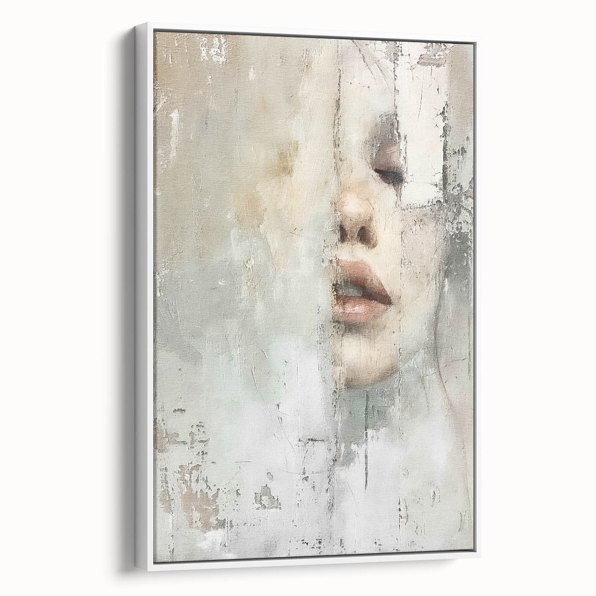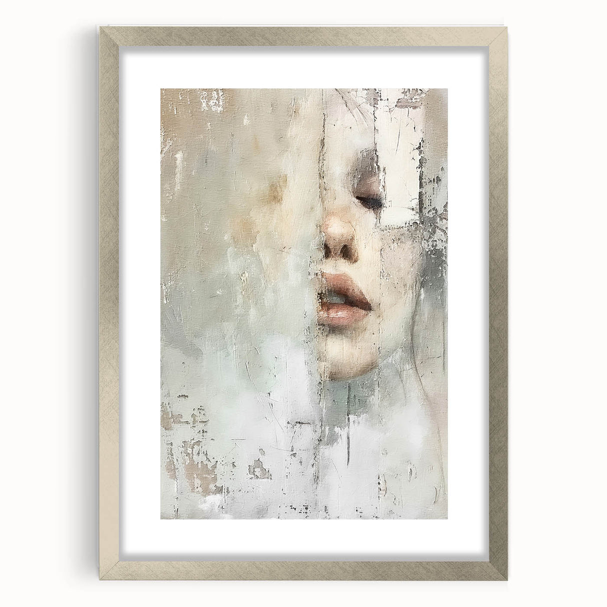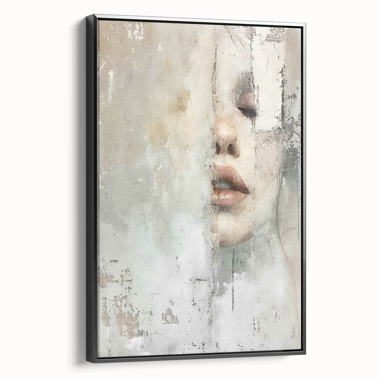 Add a sense of mystery and beauty to your space with this soft, abstract figurative wall art. This artwork, part of our Abstracts collection, features a serene face partially obscured by textured brushstrokes, blending delicate tones of beige, cream, and light green. Its subtle colors and ethereal design make it ideal for those who appreciate minimalist, contemporary decor.