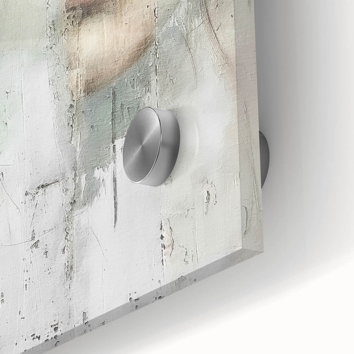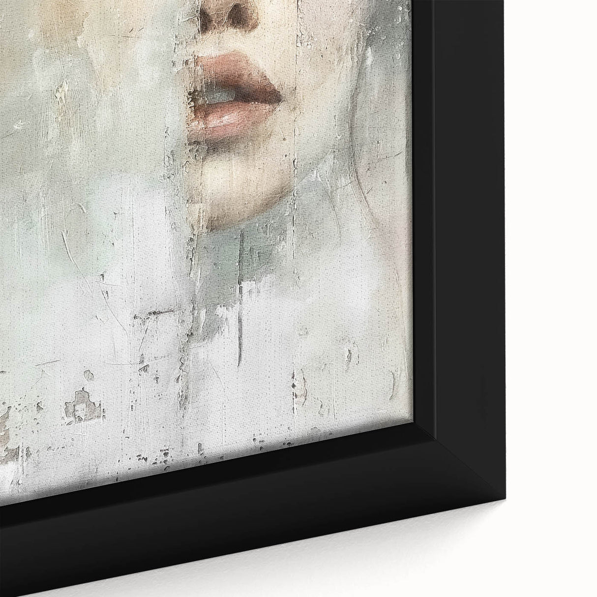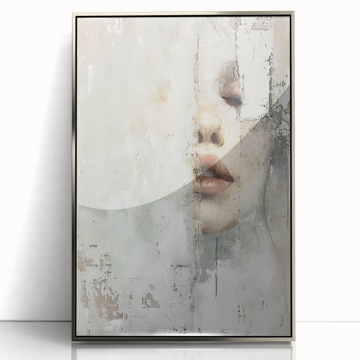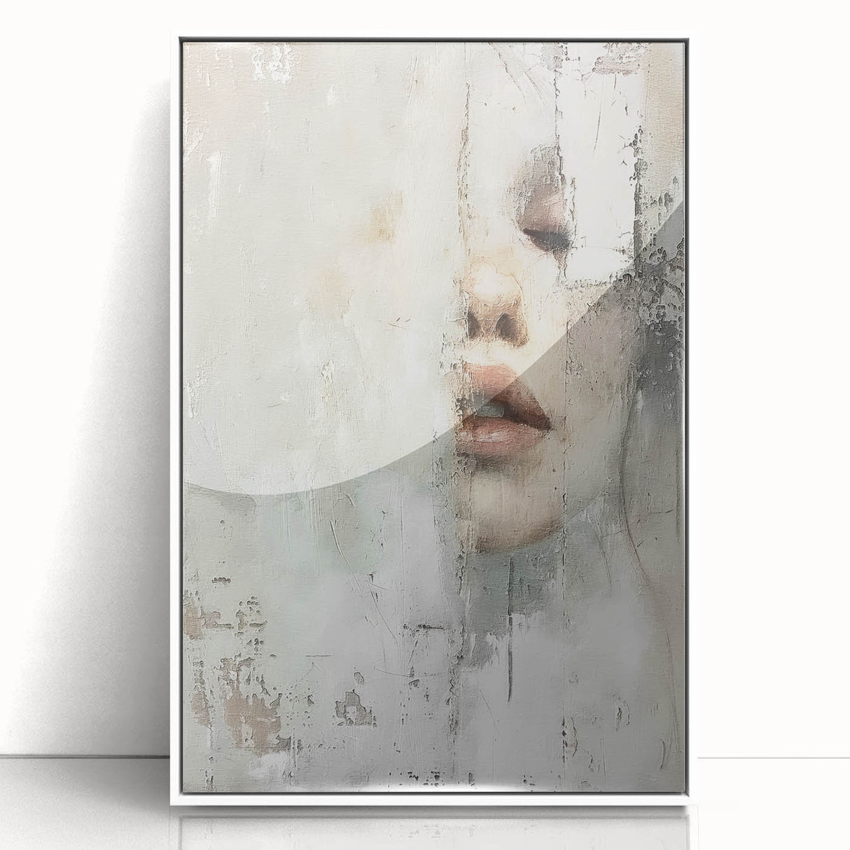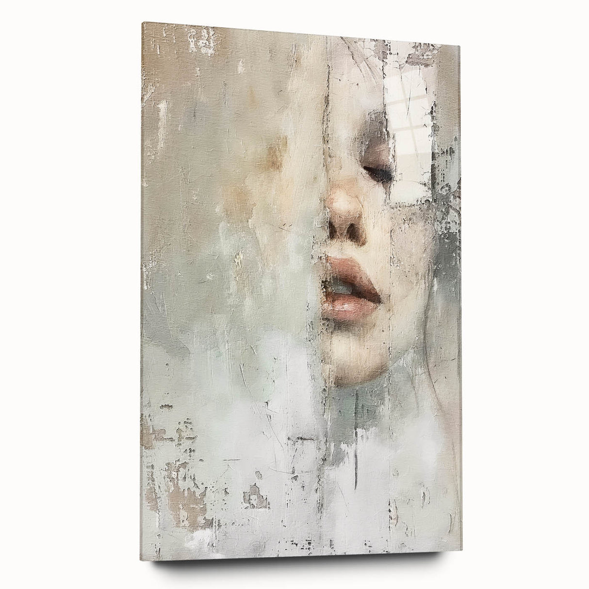 Add a sense of mystery and beauty to your space with this soft, abstract figurative wall art. This artwork, part of our Abstracts collection, features a serene face partially obscured by textured brushstrokes, blending delicate tones of beige, cream, and light green. Its subtle colors and ethereal design make it ideal for those who appreciate minimalist, contemporary decor.