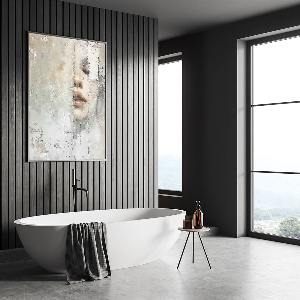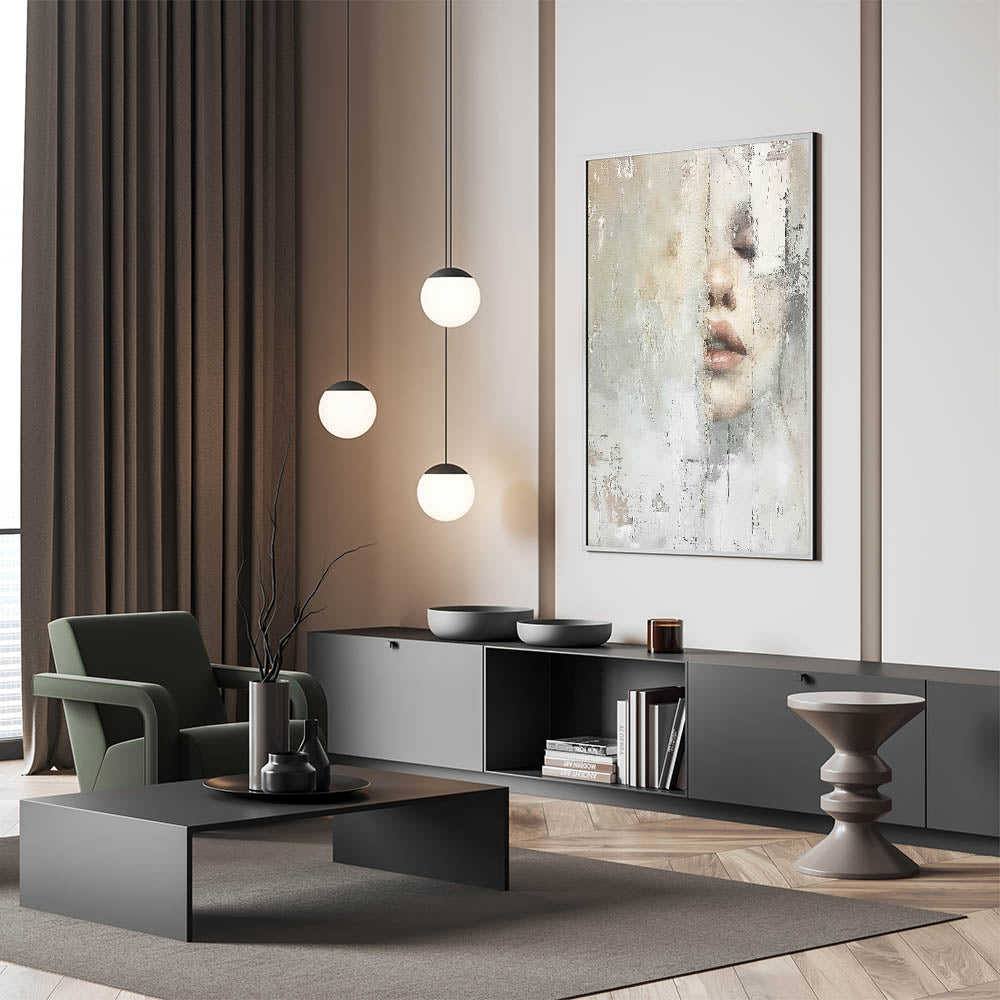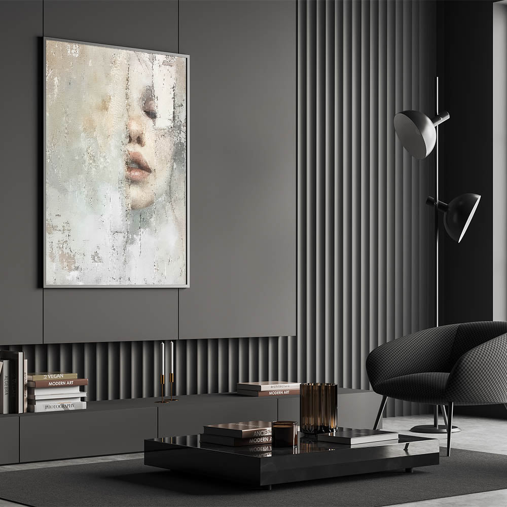 - Art Style: Abstract figurative design with a focus on blending form and texture to create a calm, meditative aesthetic.