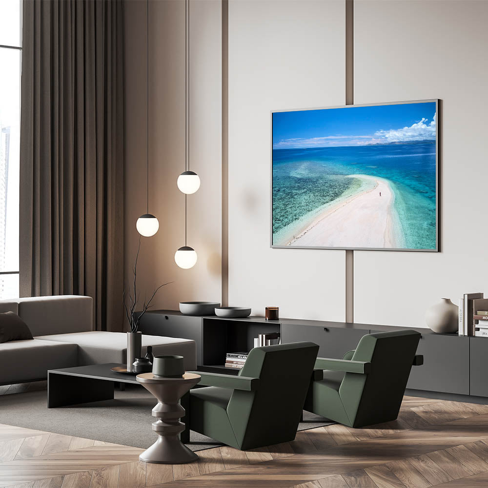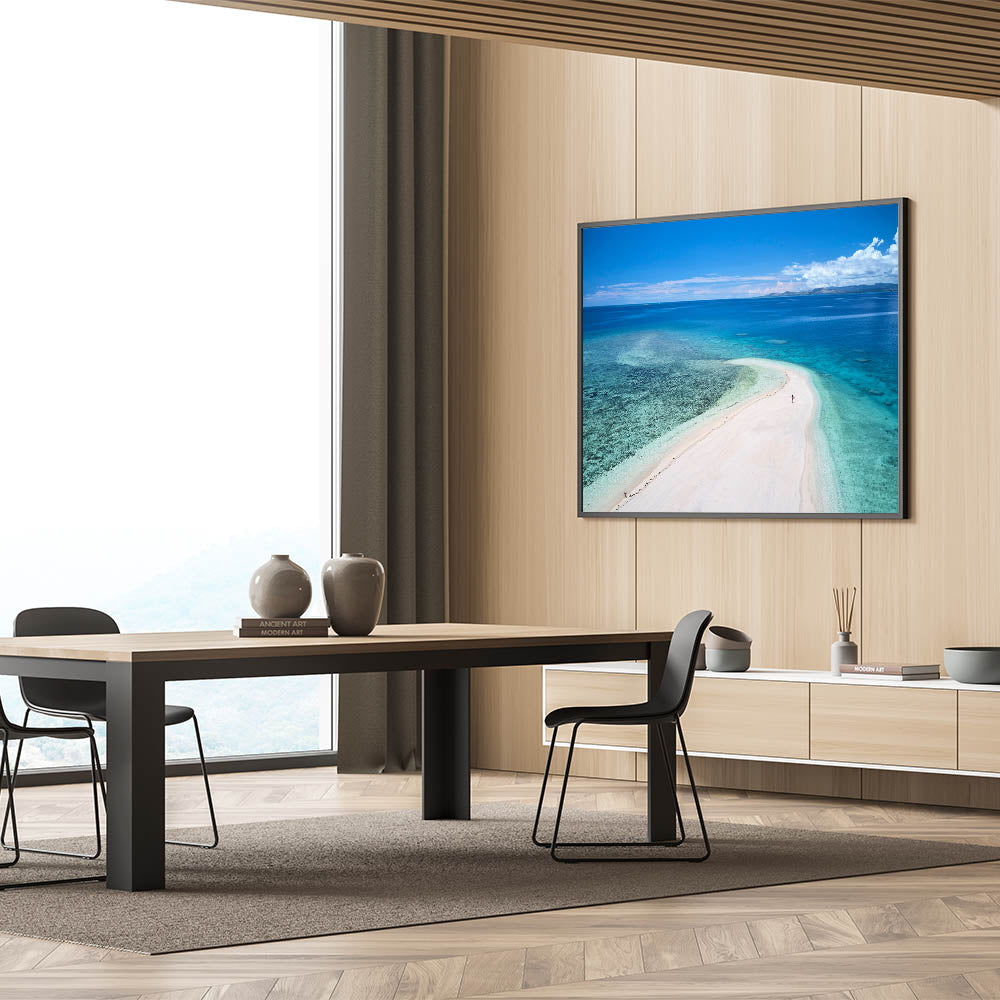 Let "Pristine Coral Reef Aerial Art" transform your decor, offering a daily glimpse into the serene and picturesque landscapes of Fiji, making it an ideal addition for anyone who loves oceanic and beach-inspired themes.