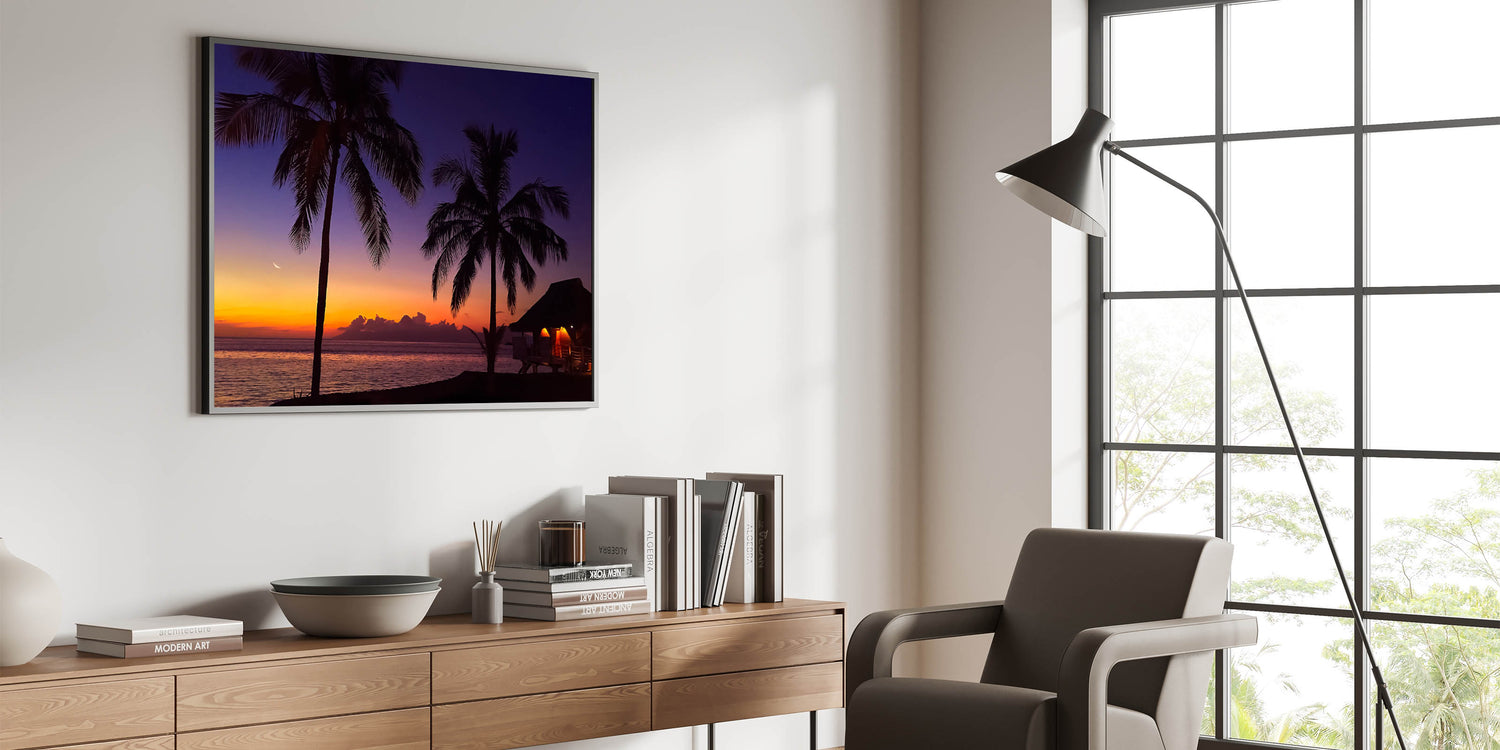 This piece invites the tranquility and beauty of a Fiji evening into your home or office, creating a focal point that captivates and soothes.