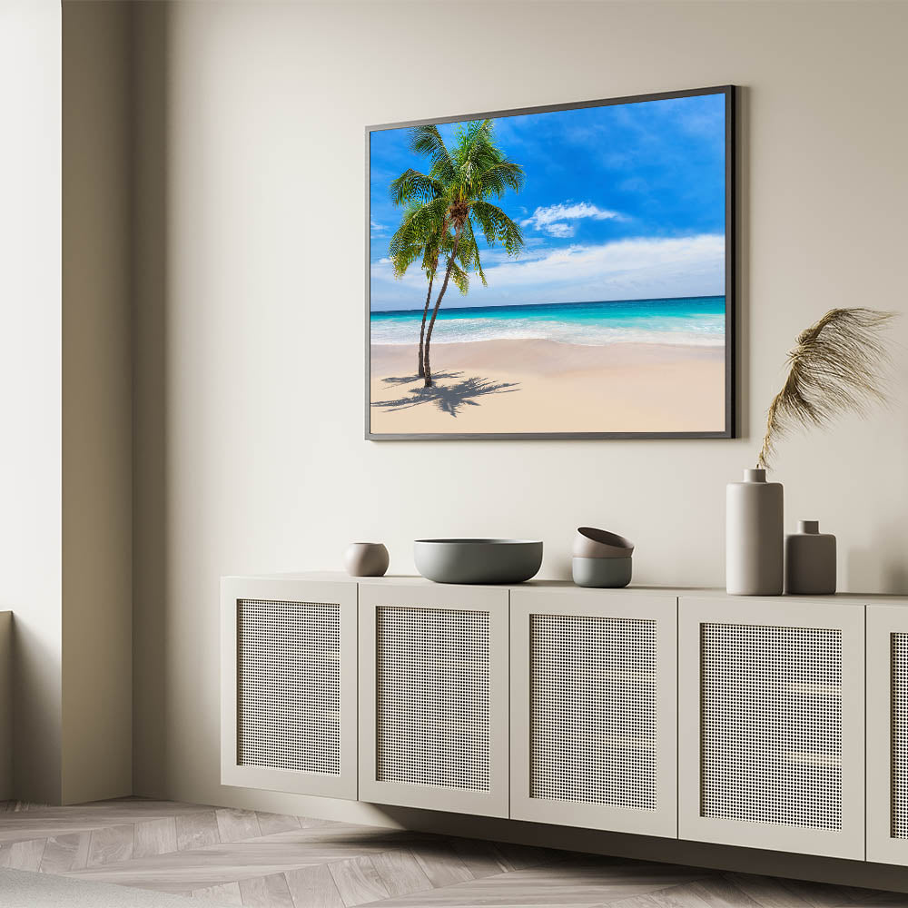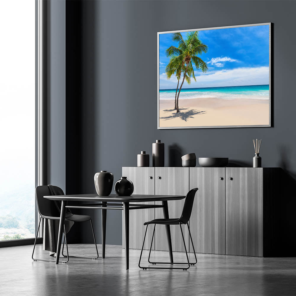 "Solitary Palm Beach Art" not only decorates your space but also serves as a daily reminder of the peaceful, idyllic beauty that Fiji offers, making it an ideal choice for those who appreciate pristine natural scenes.