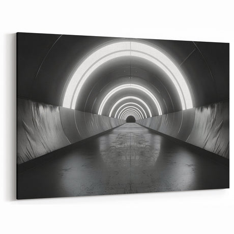 • Modern architecture tunnel design in monochrome shades on stretched canvas, suitable for kitchen wall art.