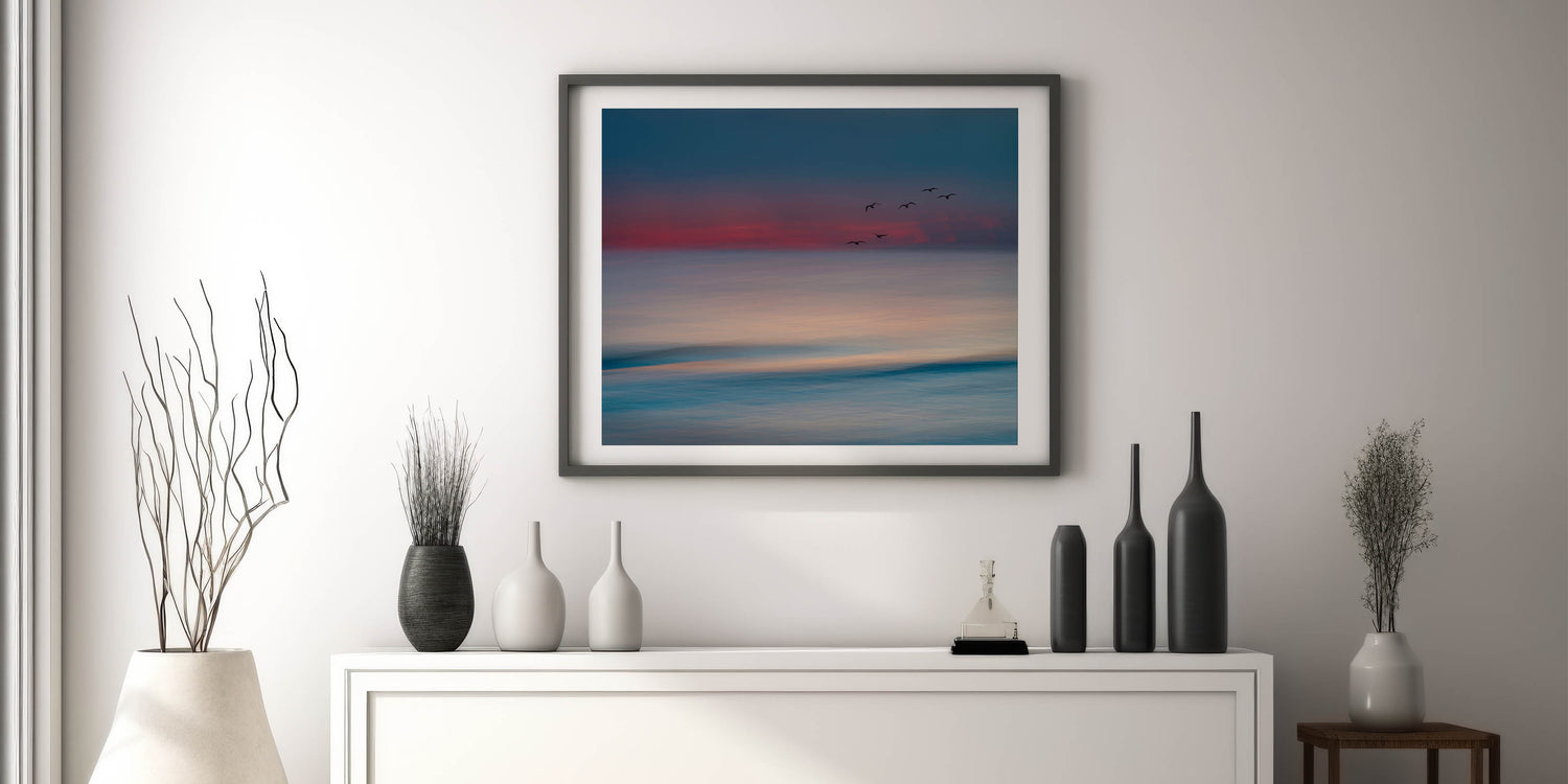 Abstract Seascape with Birds - Serene Coastal Wall Art Print