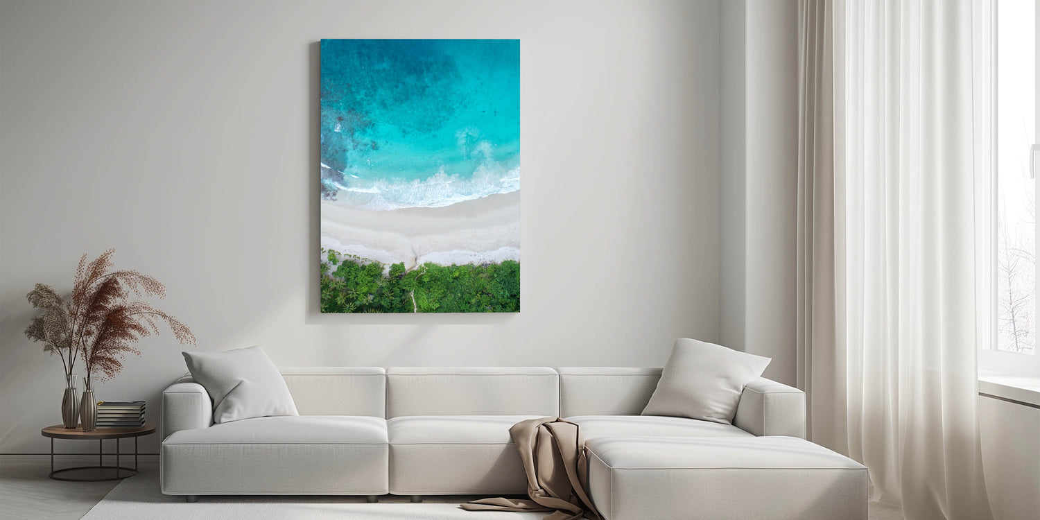 Aerial Tropical Beach Wall Art - Vibrant Ocean Shore Canvas Print