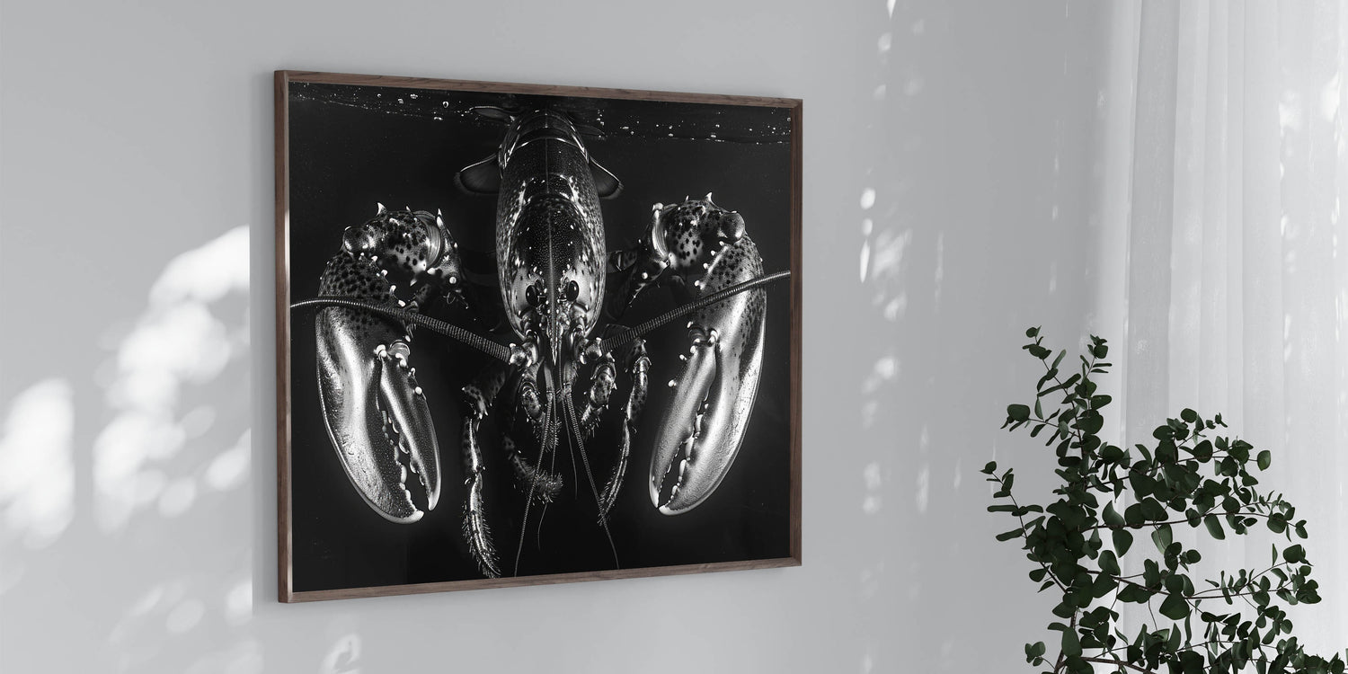 Transform your home with this sophisticated black and white lobster artwork. Whether you’re looking to add a modern touch to your coastal decor or simply love marine life, this piece is a perfect addition to any room. Available in various print and frame options to suit your style.