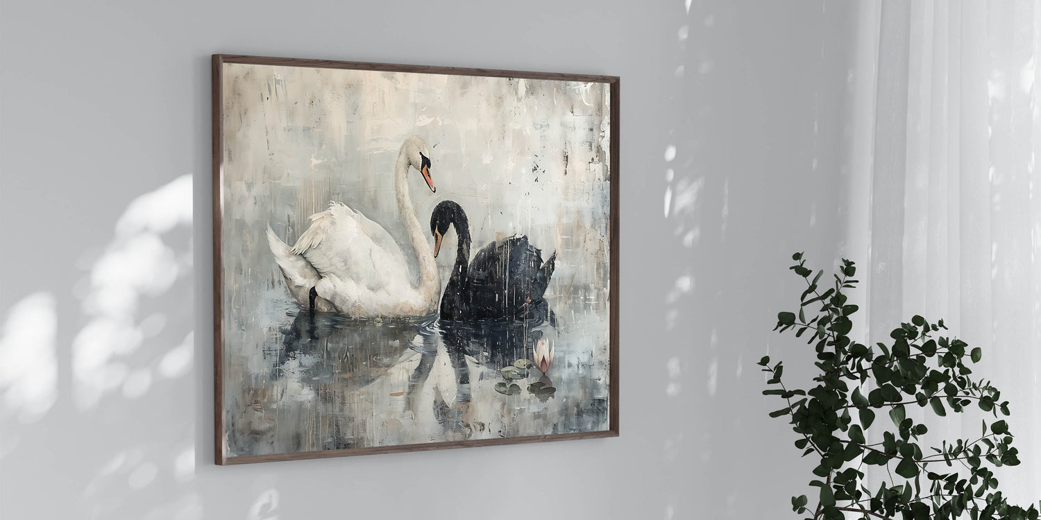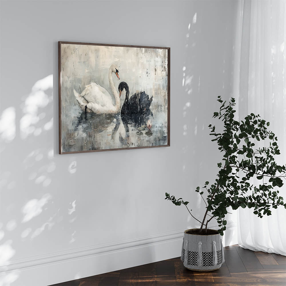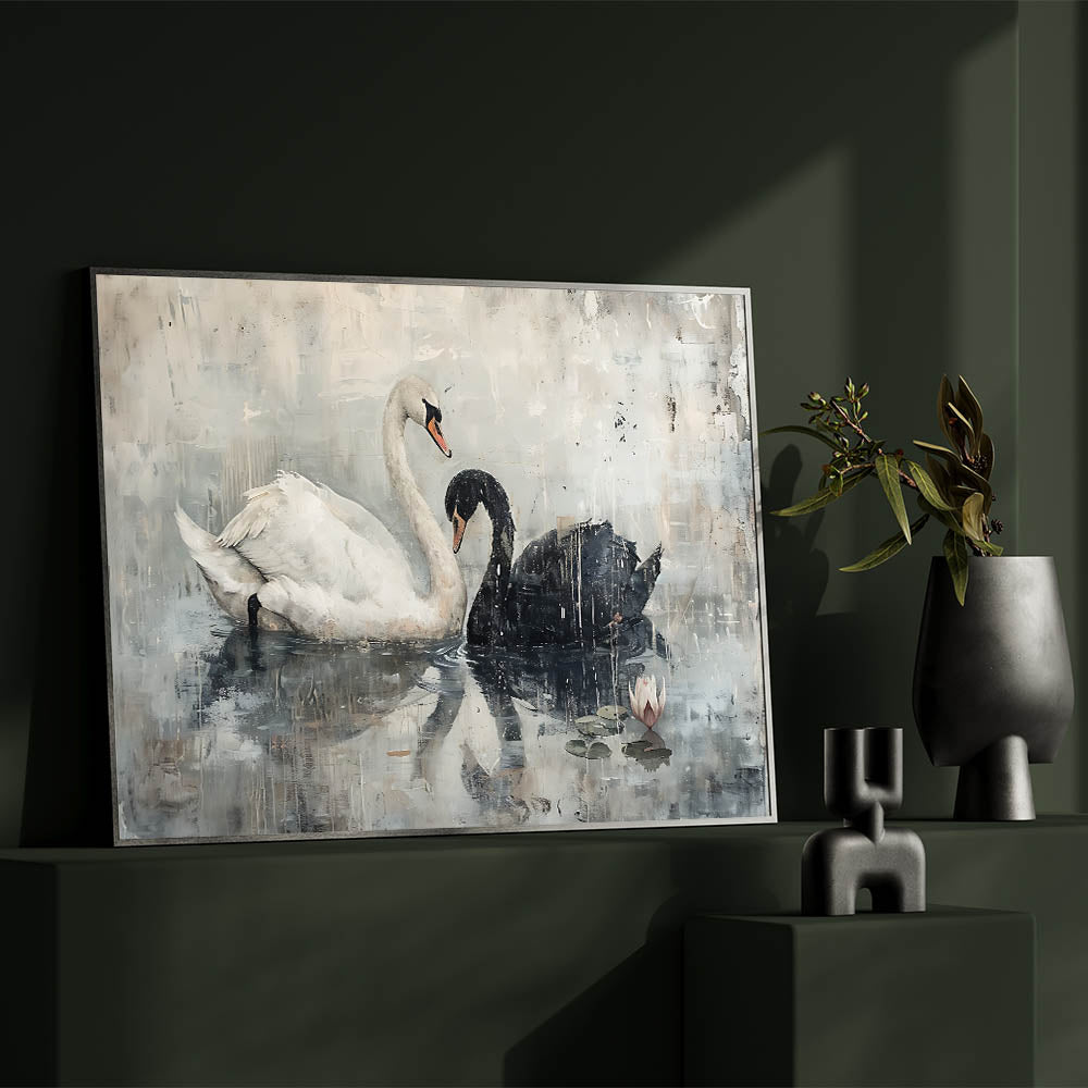 This swan art print is more than just a decorative piece; it's a meaningful addition to any room, bringing a sense of peace and sophistication. Perfect for living rooms, bedrooms, or offices, this artwork will captivate anyone who appreciates the beauty of nature and the symbolism of harmony.