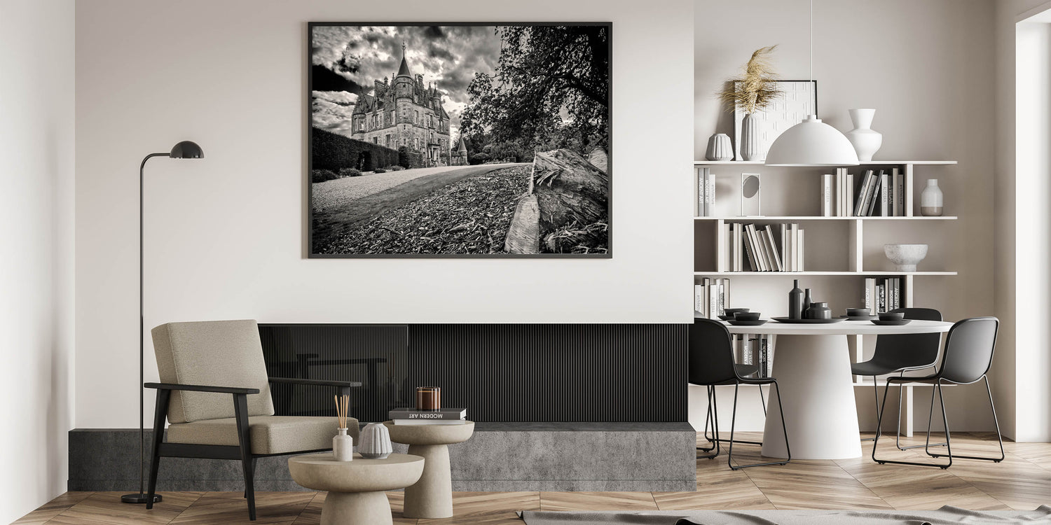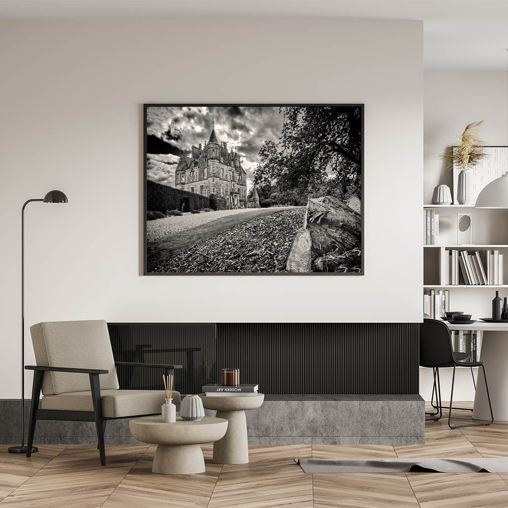 Castle Photography Art - Scenic Castle Landscape in Black and White Print