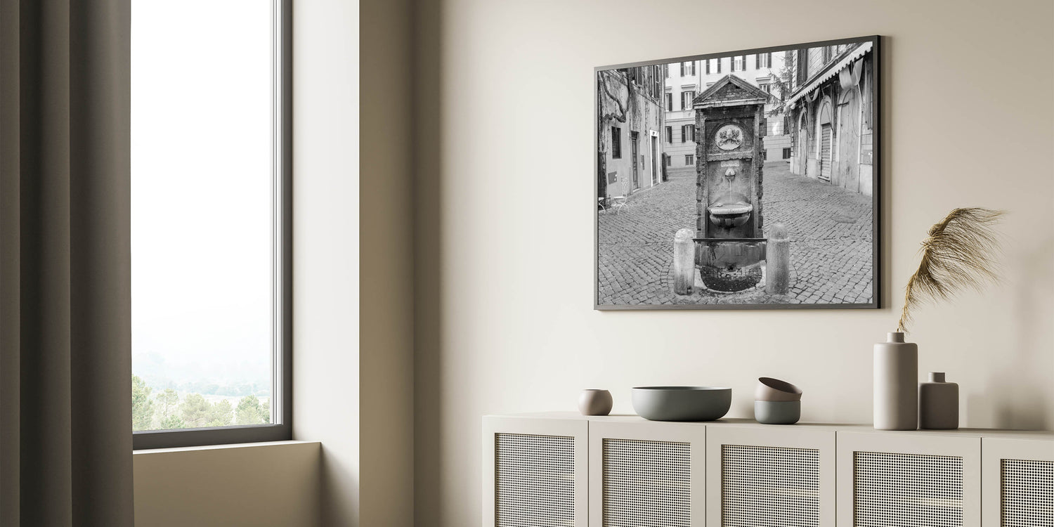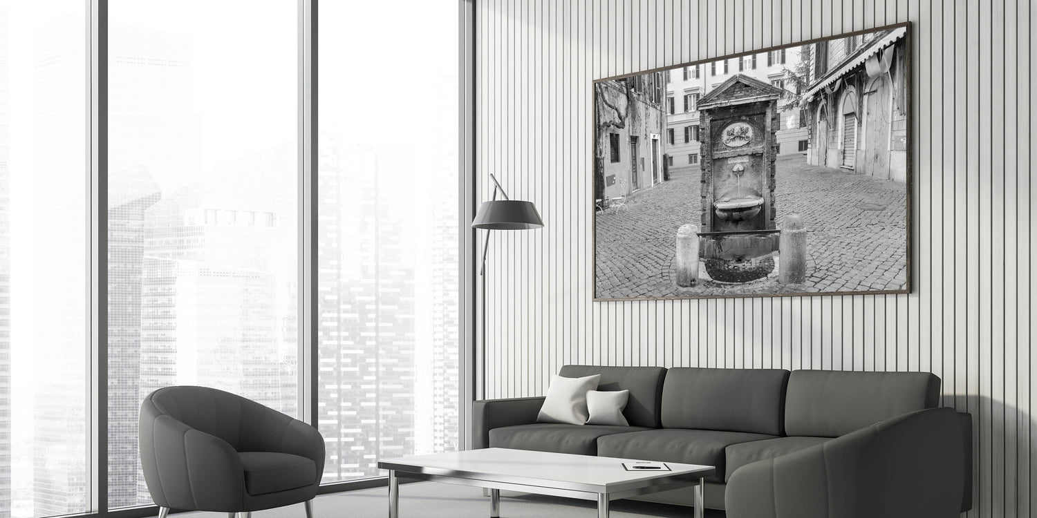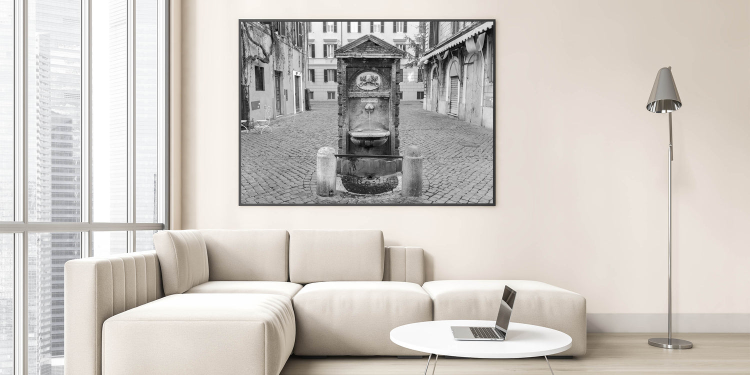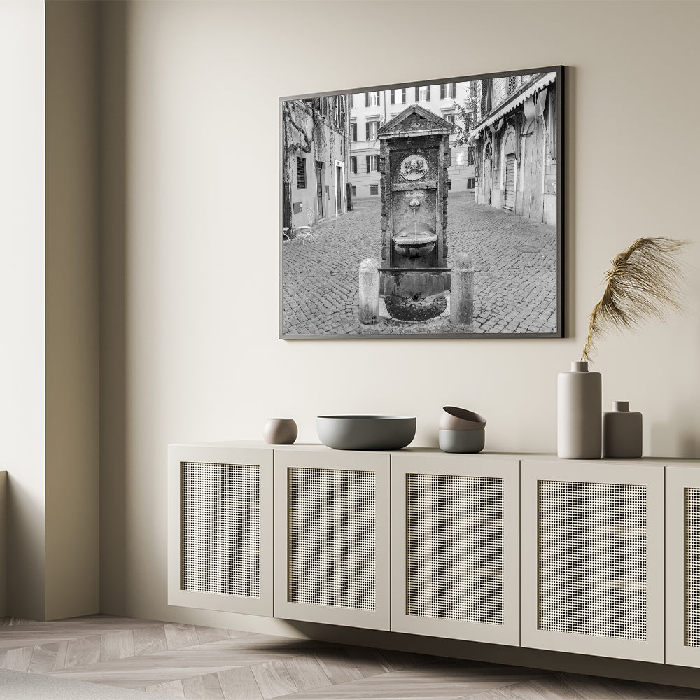 This piece is ideal for anyone looking to incorporate architectural art into their decor. Whether you're decorating a modern space or a more traditional setting, this historic fountain artwork will add a sophisticated touch that’s sure to impress.
