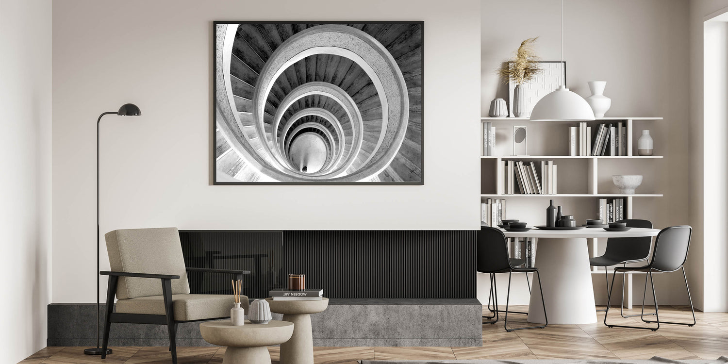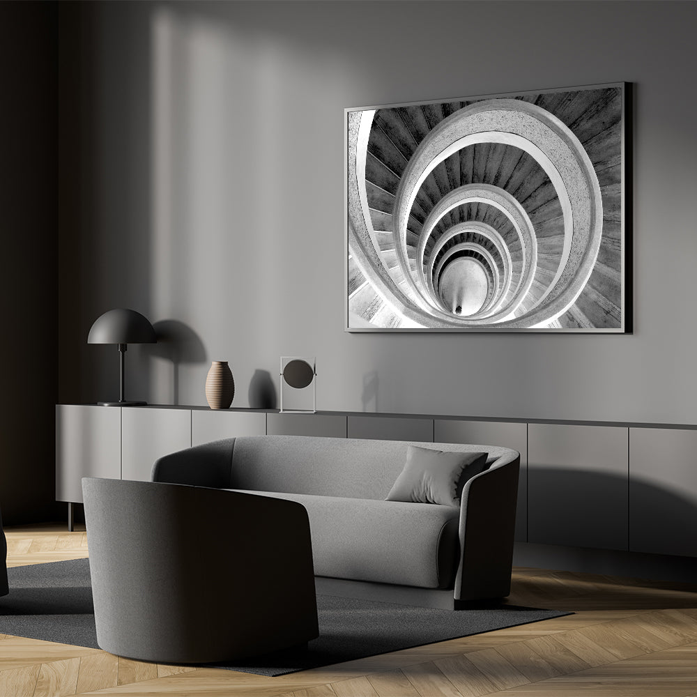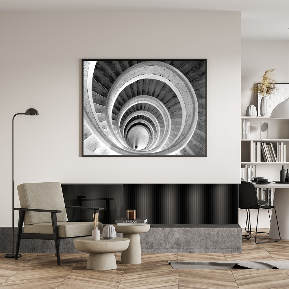 Classic Black and White Spiral Staircase Wall Art - Architectural Print