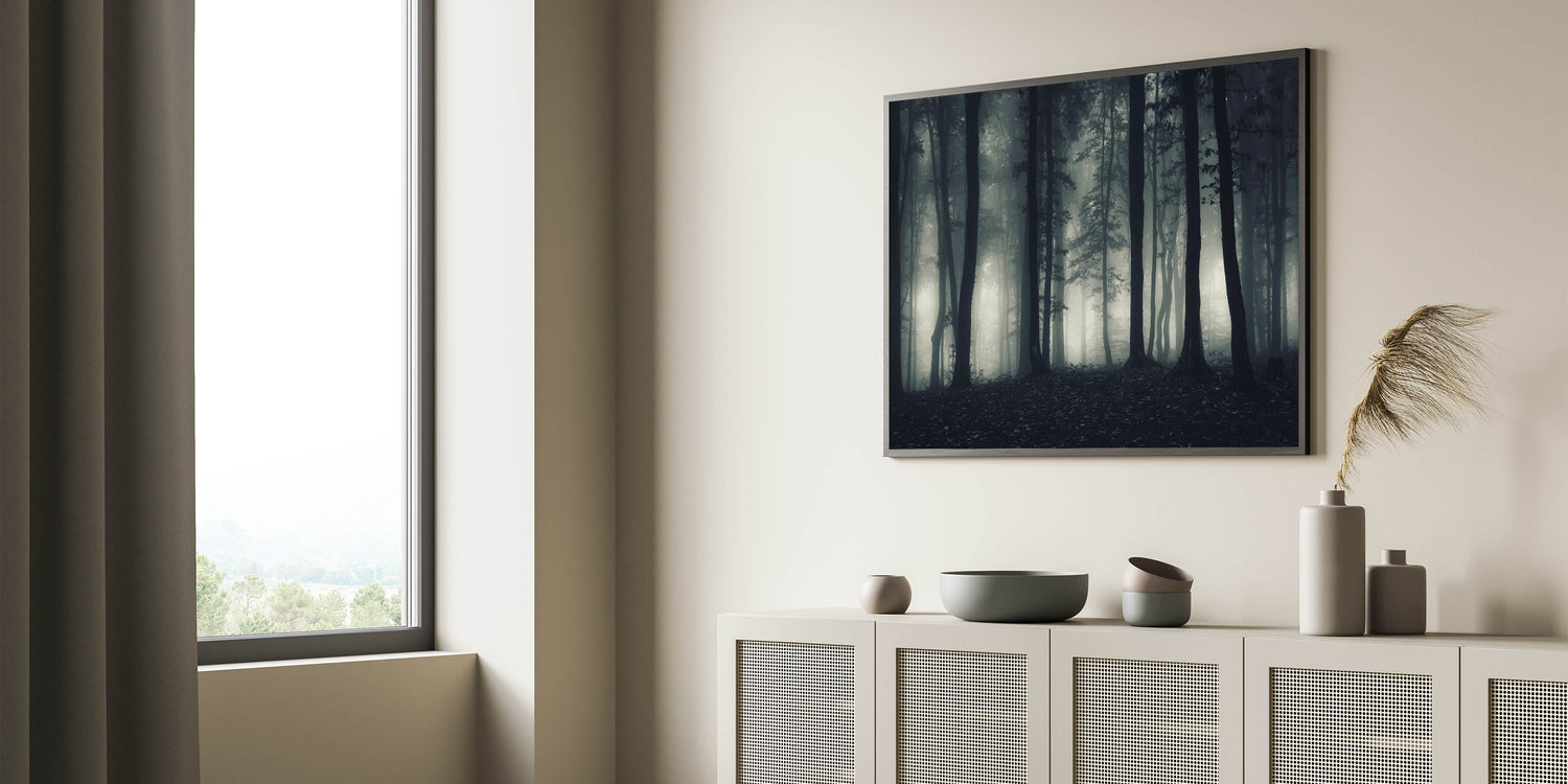 Whether you're drawn to the enigmatic allure of the forest or simply enjoy the calm, introspective atmosphere that misty landscapes provide, this canvas print will make a striking addition to your art collection.