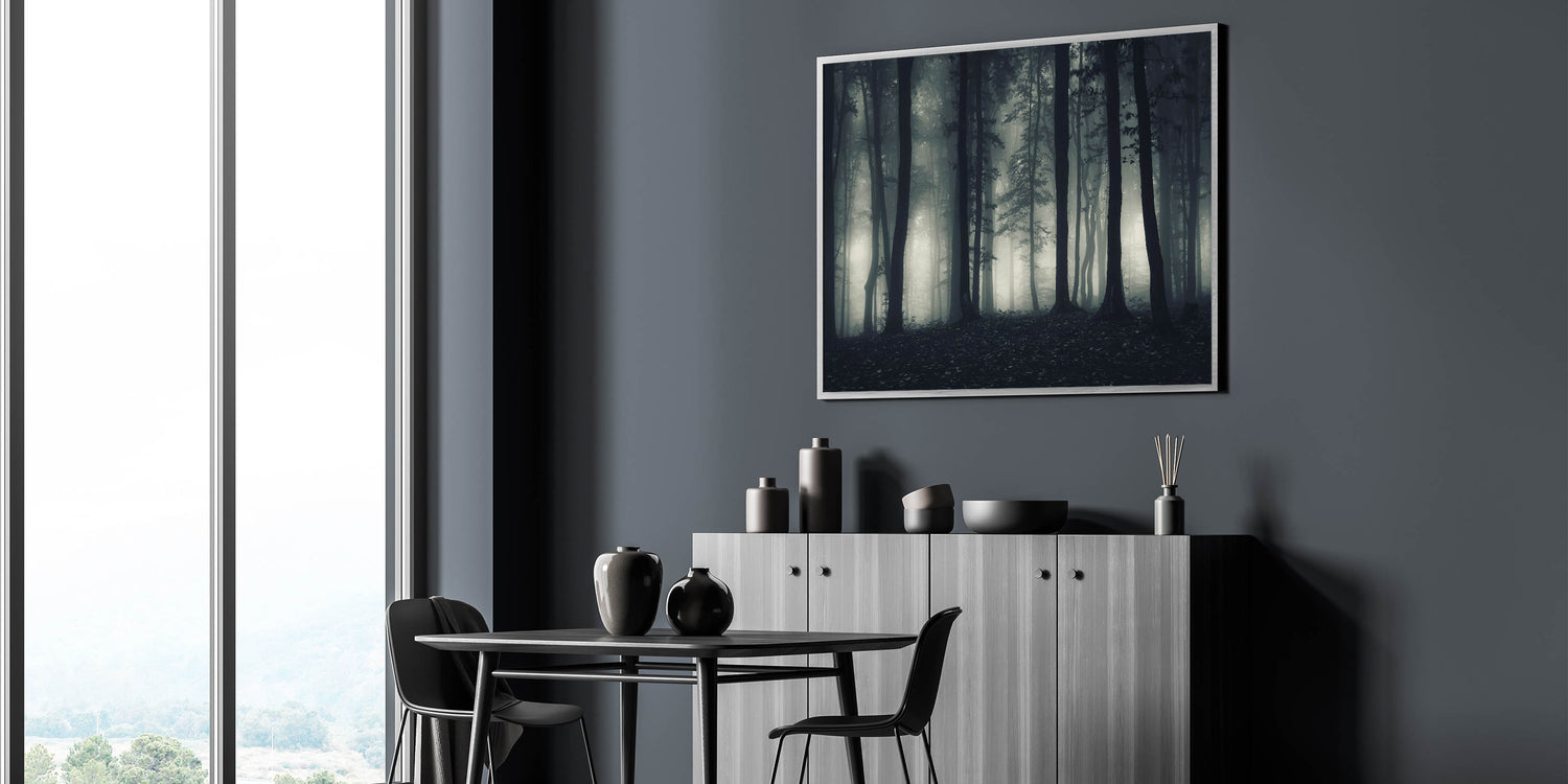 Dark Misty Forest Art - Mysterious Foggy Landscape Canvas for Dramatic Decor