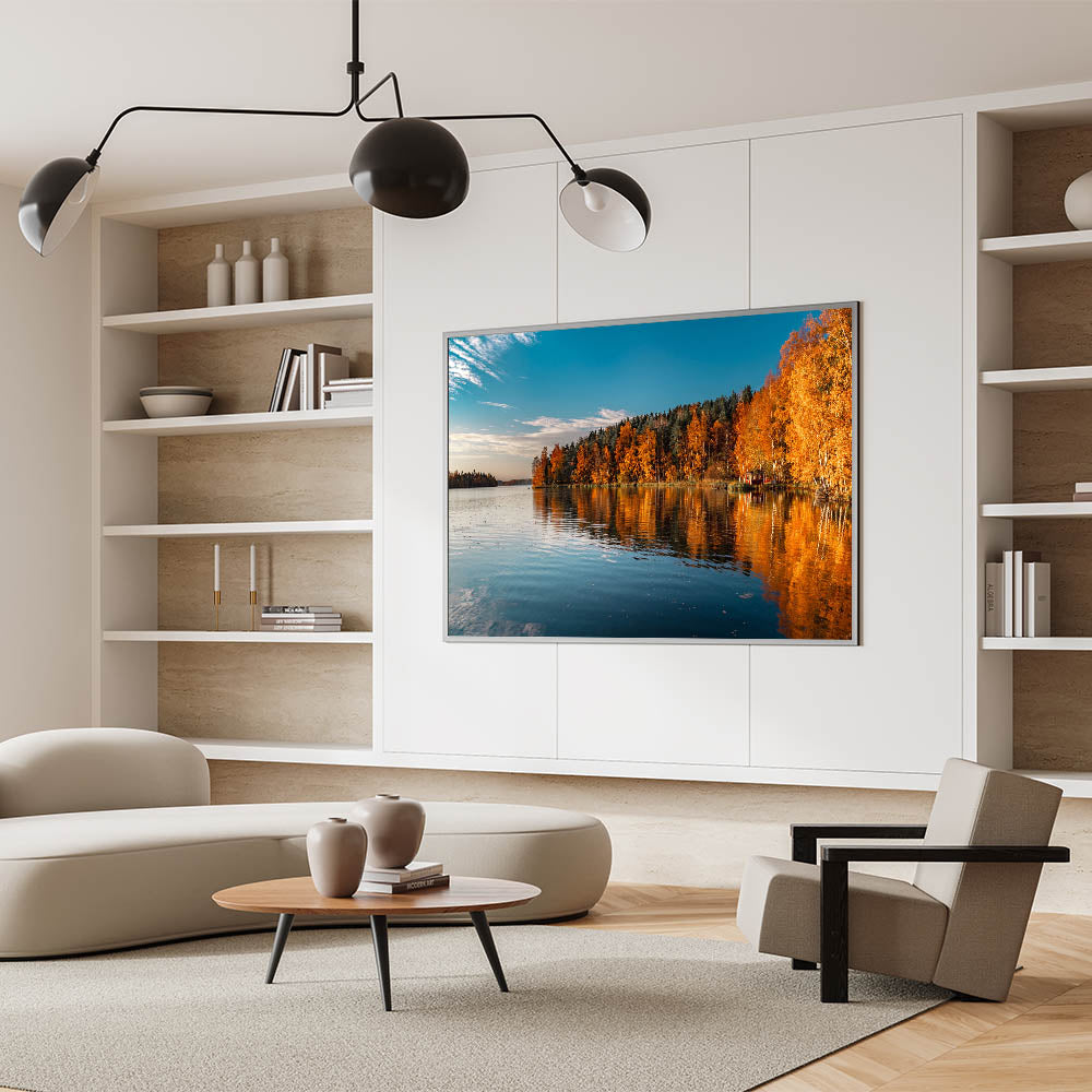 This scenic Finland art print showcases the peaceful beauty of Nordic nature during autumn, offering a calming view of Finland’s natural splendor. With high-quality printing on your chosen material, this artwork will elevate your home’s décor and provide a touch of seasonal charm.
