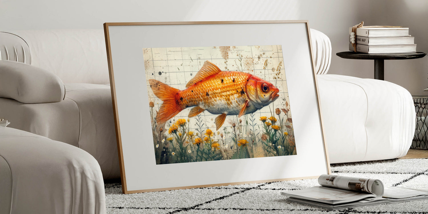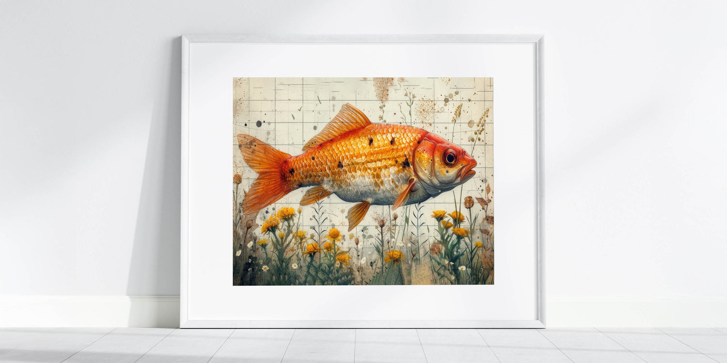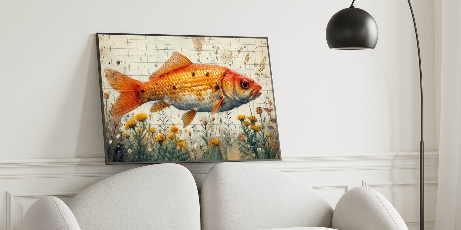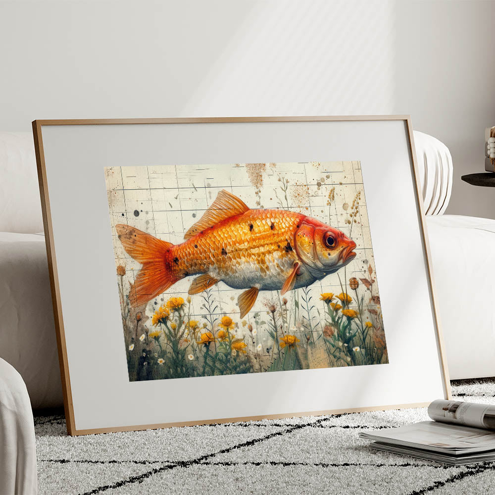 Golden Fish and Wildflowers Wall Art - Canvas, Framed & Acrylic