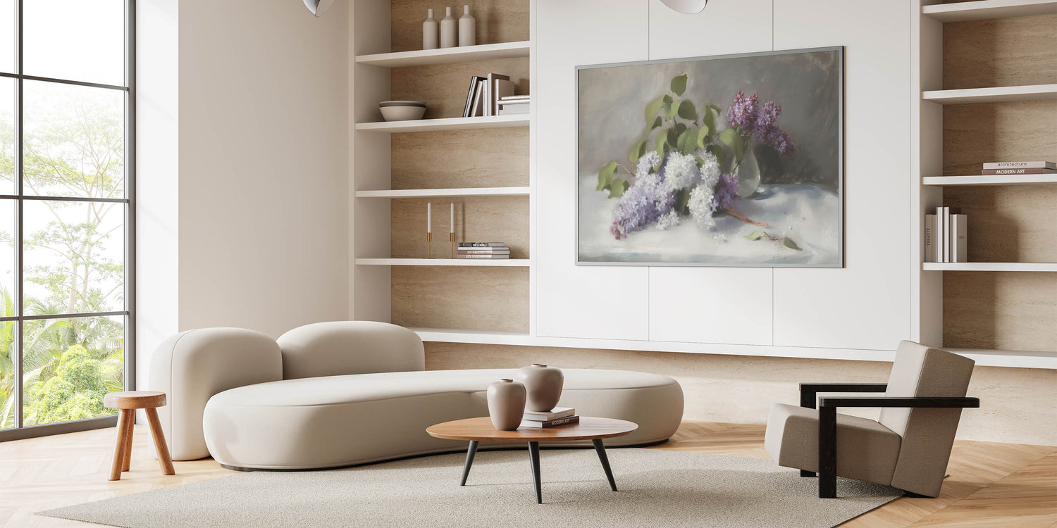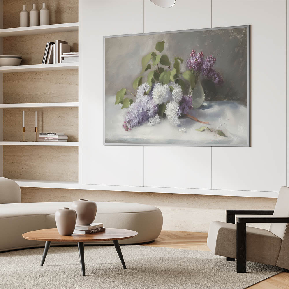 Elegant Floral Still Life Canvas – Lilac and White Blossoms