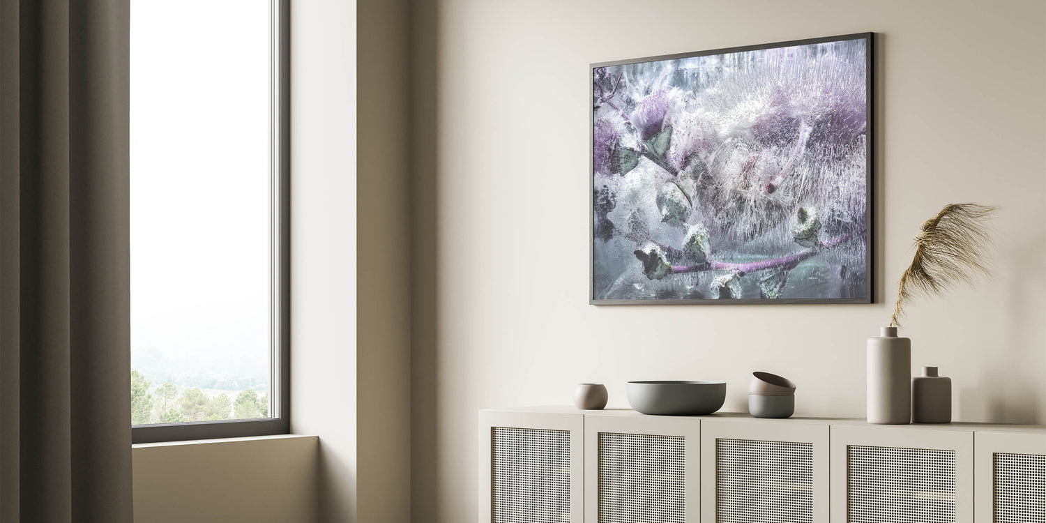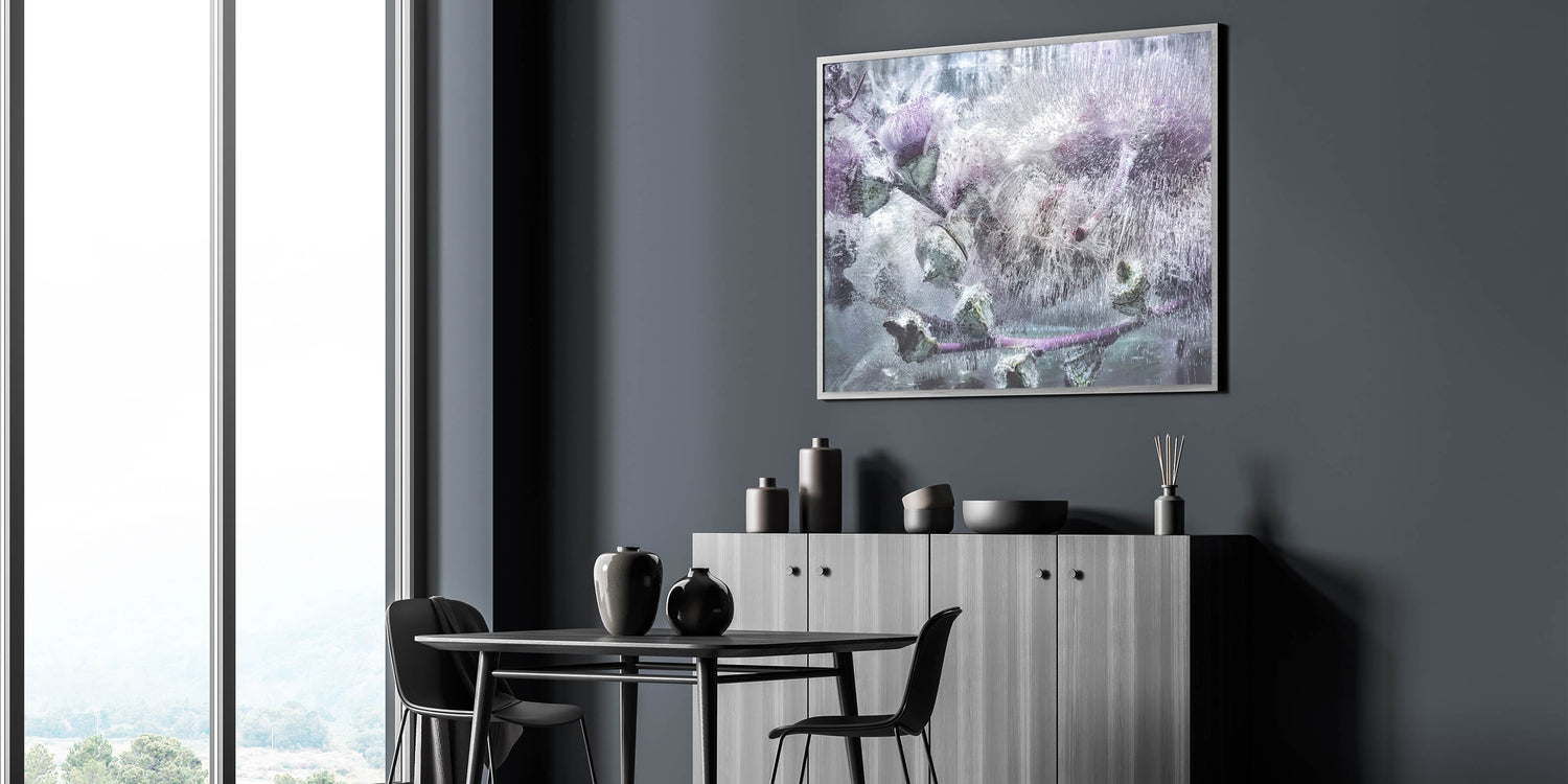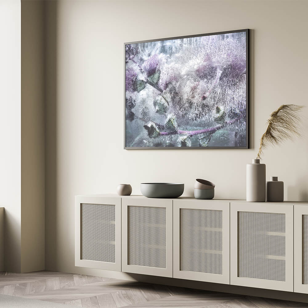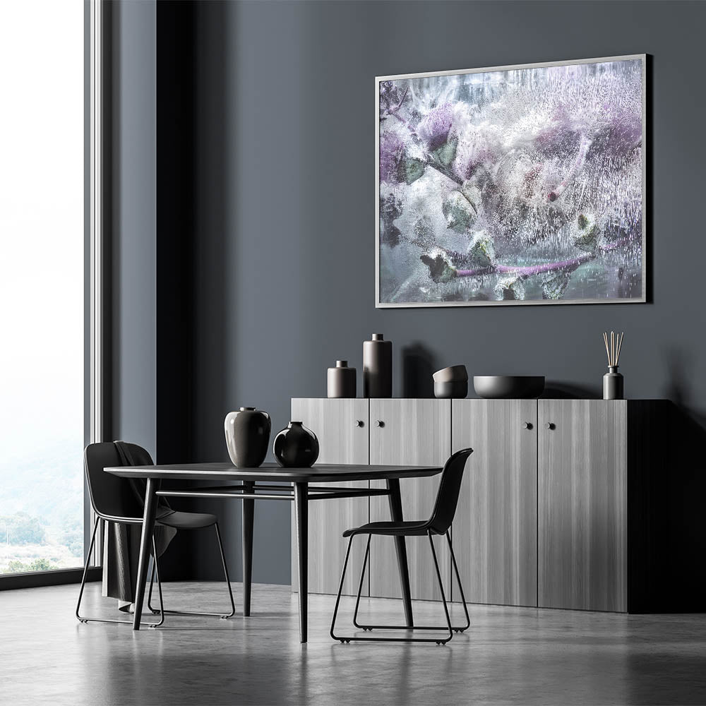 Whether you're drawn to botanical artistry or abstract natural compositions, this frozen floral fine art print brings a sophisticated and calming presence to any space. Choose from multiple finishes, including canvas prints, acrylic prints, and framed prints, to complement your decor.