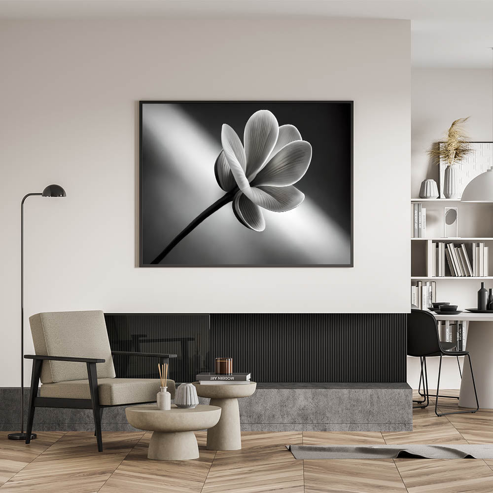 Bring a sense of calm and refinement to your space with this monochrome floral print. Its subtle elegance makes it a standout piece that enhances the sophistication of any room.