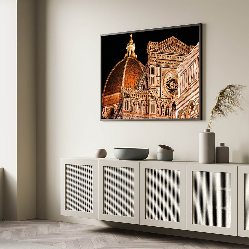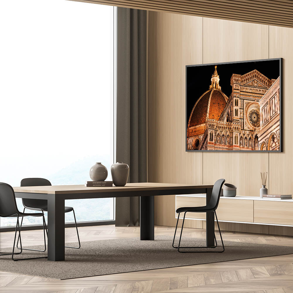 This high-quality Florence canvas print beautifully captures the iconic Duomo Cathedral, one of the most stunning examples of Italian architecture. The intricate details of this Italian landscape art bring the essence of Florence right into your home. The golden hues and timeless beauty of the Duomo make this artwork a must-have for lovers of Tuscany artwork and Florence cityscape paintings.