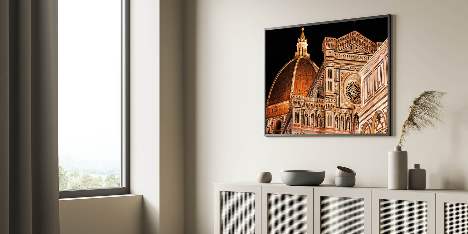Whether you're a fan of Florence cityscape paintings or want to add a piece of Tuscany artwork to your home decor, this striking print of Florence’s Duomo Cathedral will make a beautiful addition to any wall.