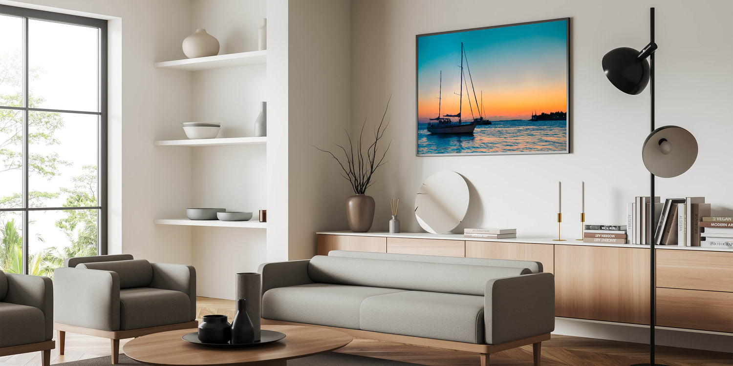 - Nautical-themed wall art: Ideal for creating a beach-inspired space with colorful sunset prints.