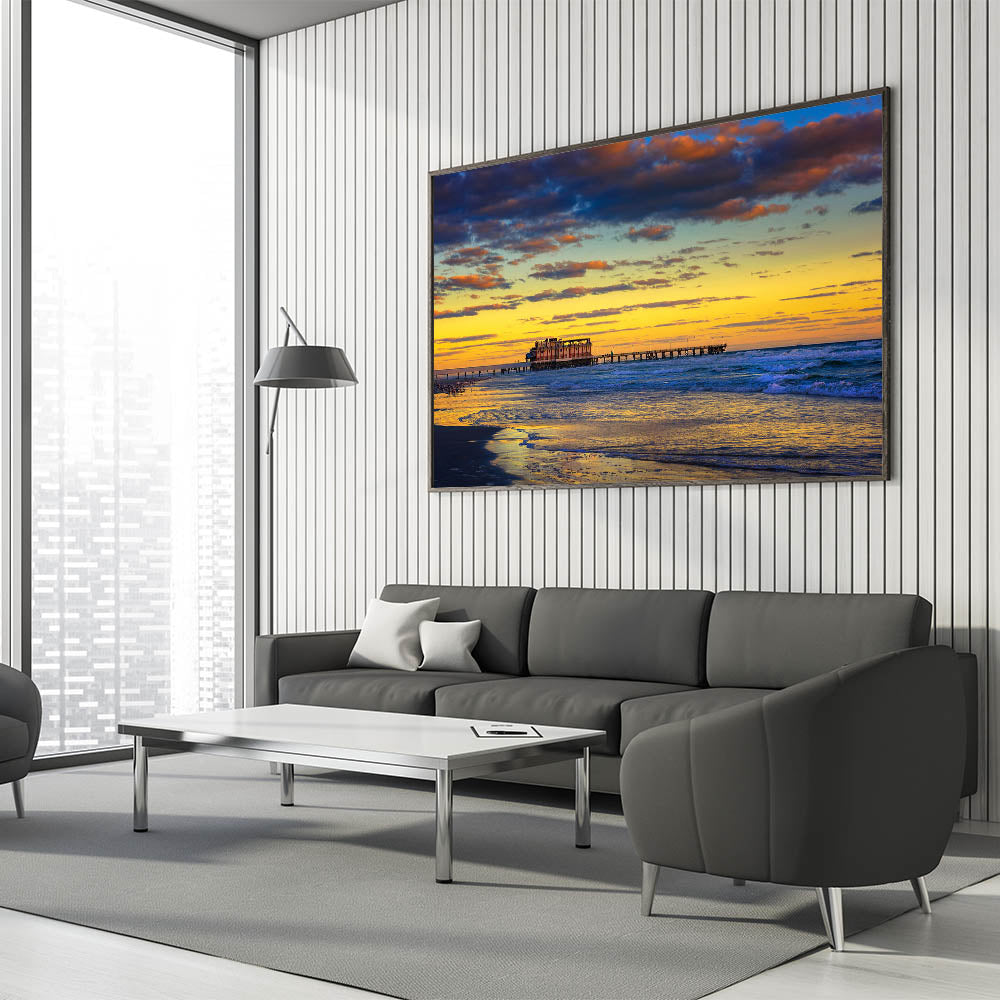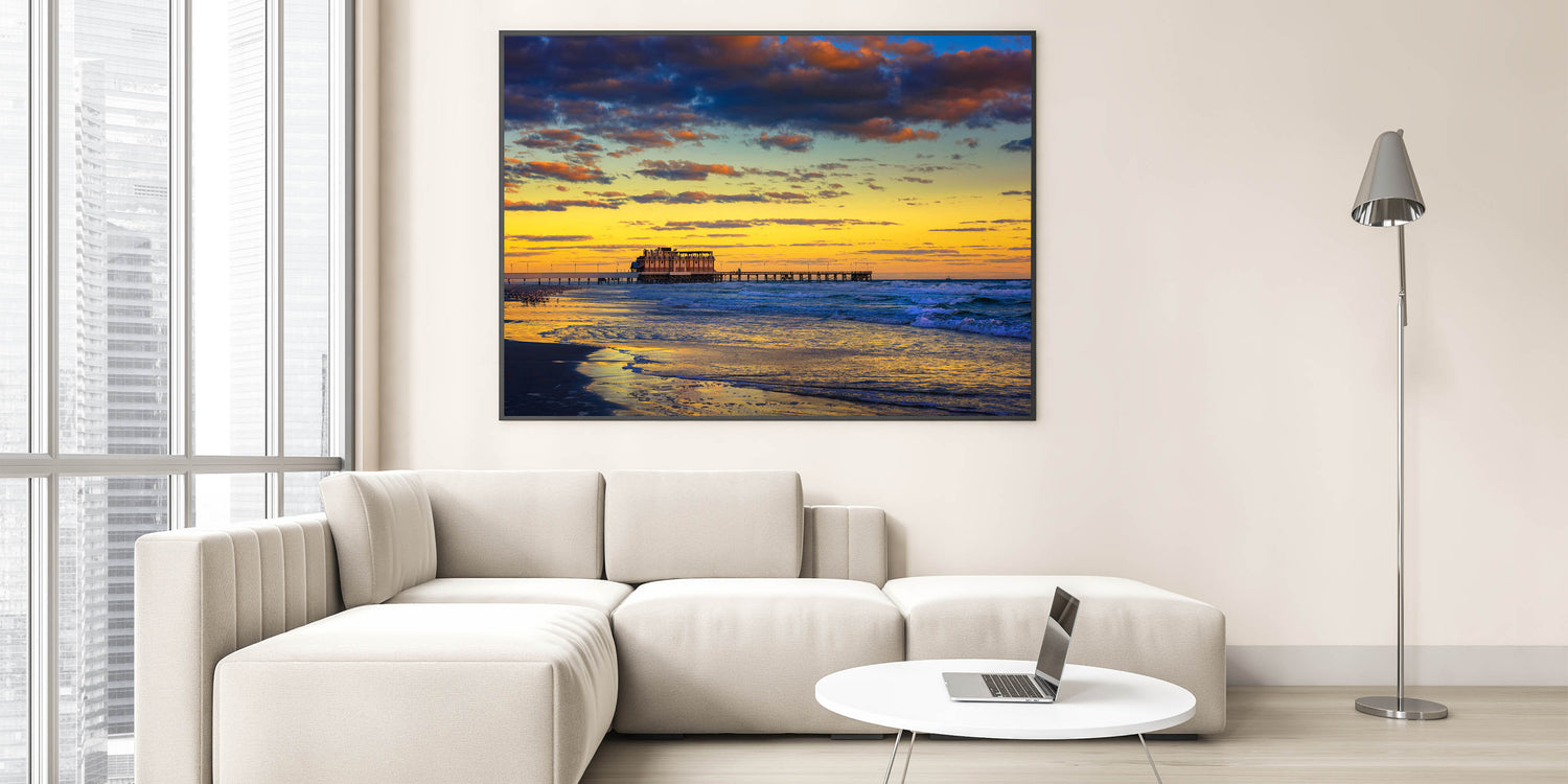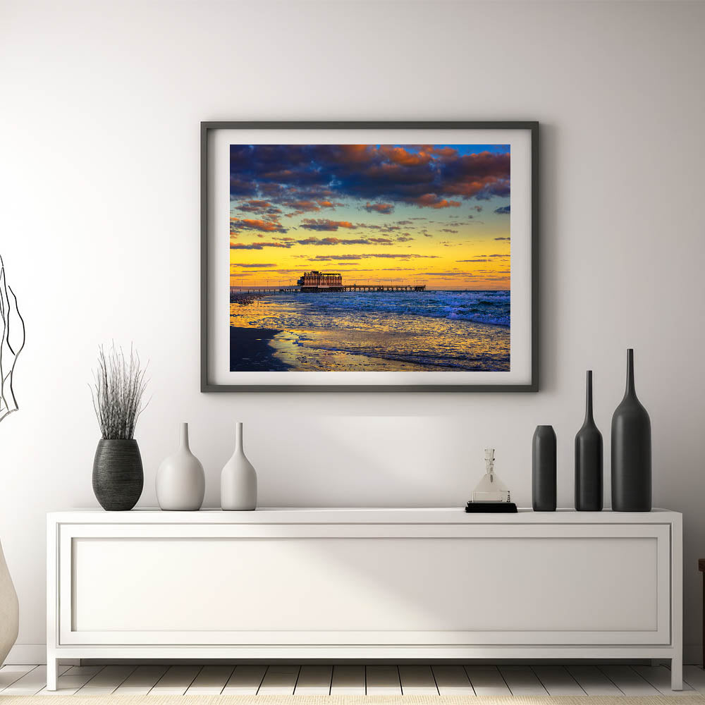 • The detailed depiction of the pier and the golden sunset make this a standout addition to any art collection.