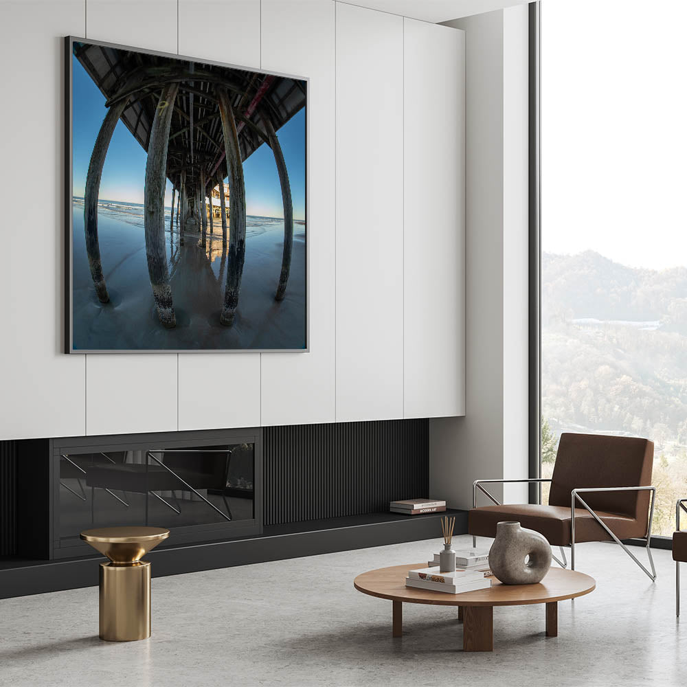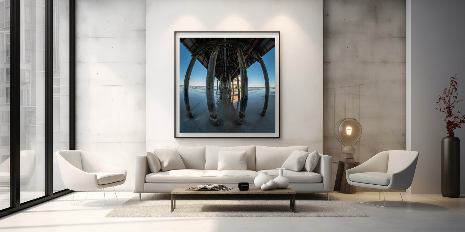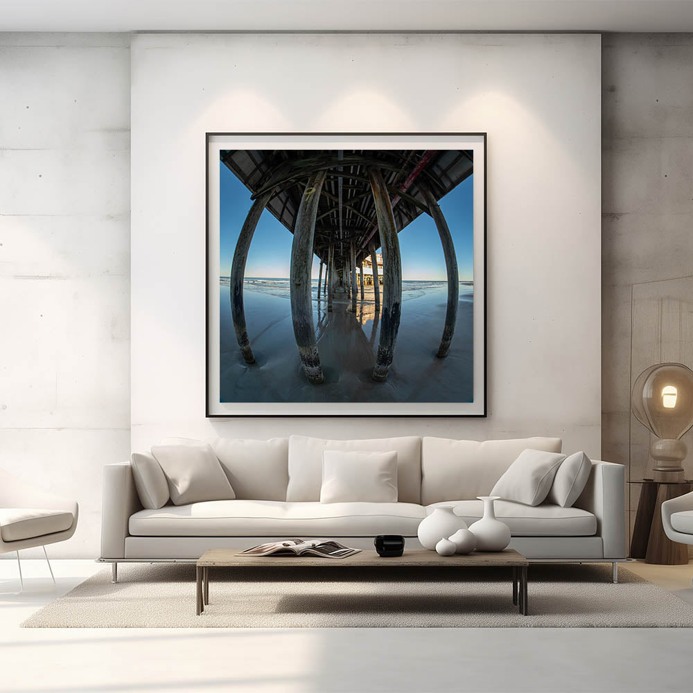 Whether you’re looking to add a fresh perspective to your home decor or seeking a unique coastal scene, this understructure view of the Daytona Beach pier brings a bold and contemporary element to any space.
