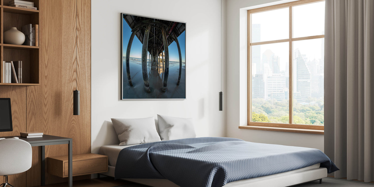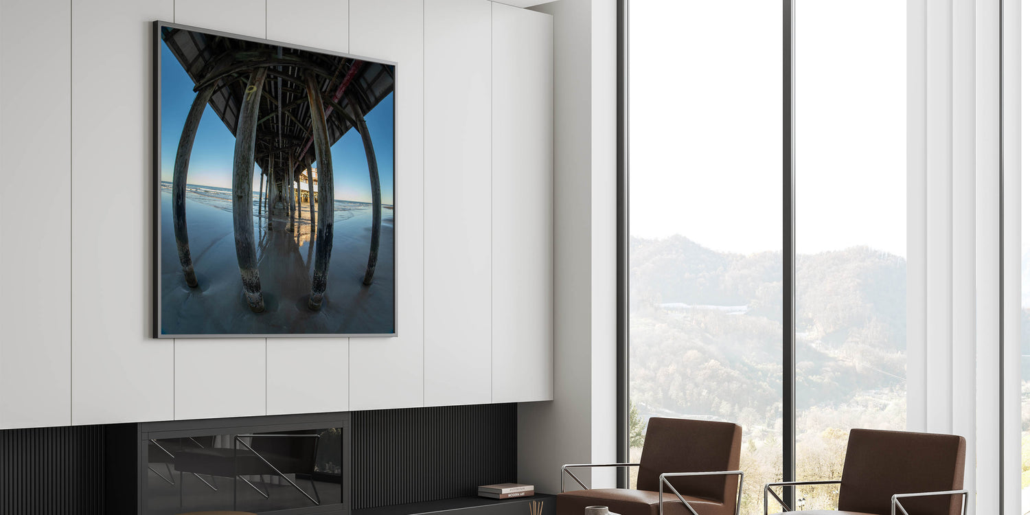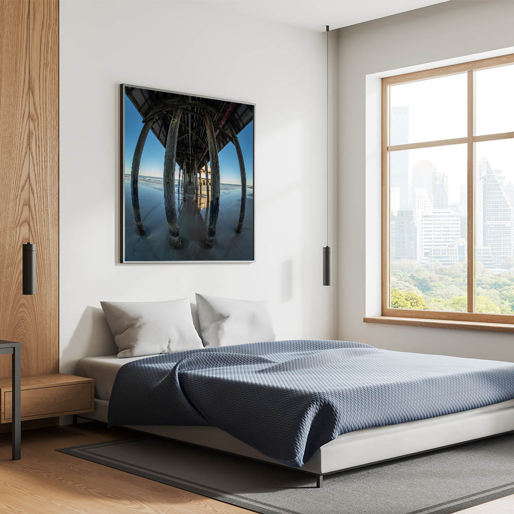 Whether you’re looking to add a fresh perspective to your home decor or seeking a unique coastal scene, this understructure view of the Daytona Beach pier brings a bold and contemporary element to any space.