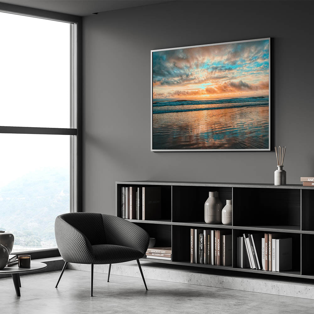 Let this Daytona Beach wall art transport you to the calm and serene shores of Florida, where the ocean meets the sky in a beautiful display of natural colors. A must-have for anyone looking to bring the soothing effects of the beach into their home.
