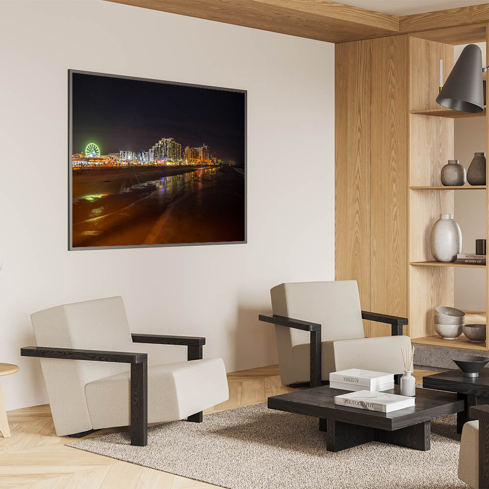 Bring a piece of Daytona Beach's vibrant nightlife into your home with this unique piece of wall art. Ideal for those who appreciate the excitement of Florida's coastal cities and want to add a touch of modern charm to their interior.