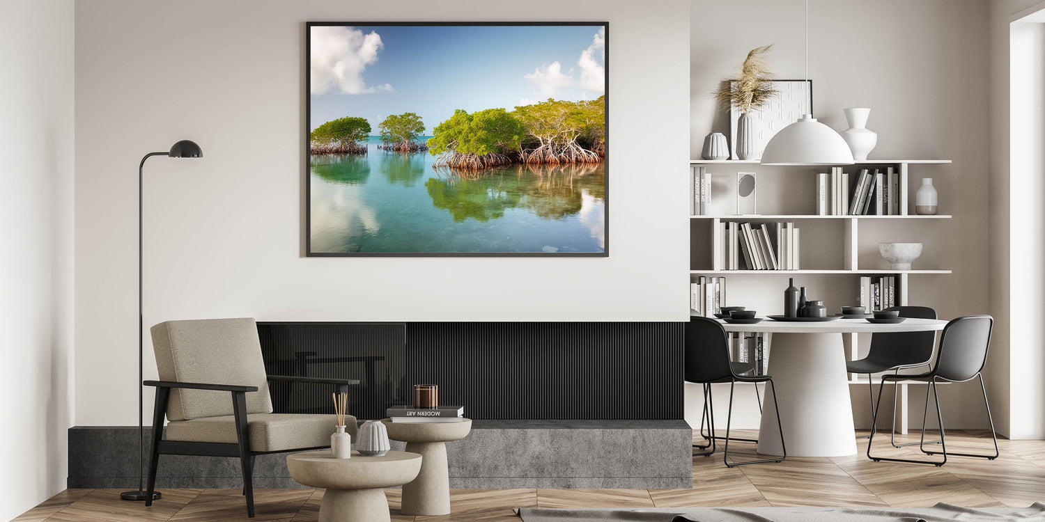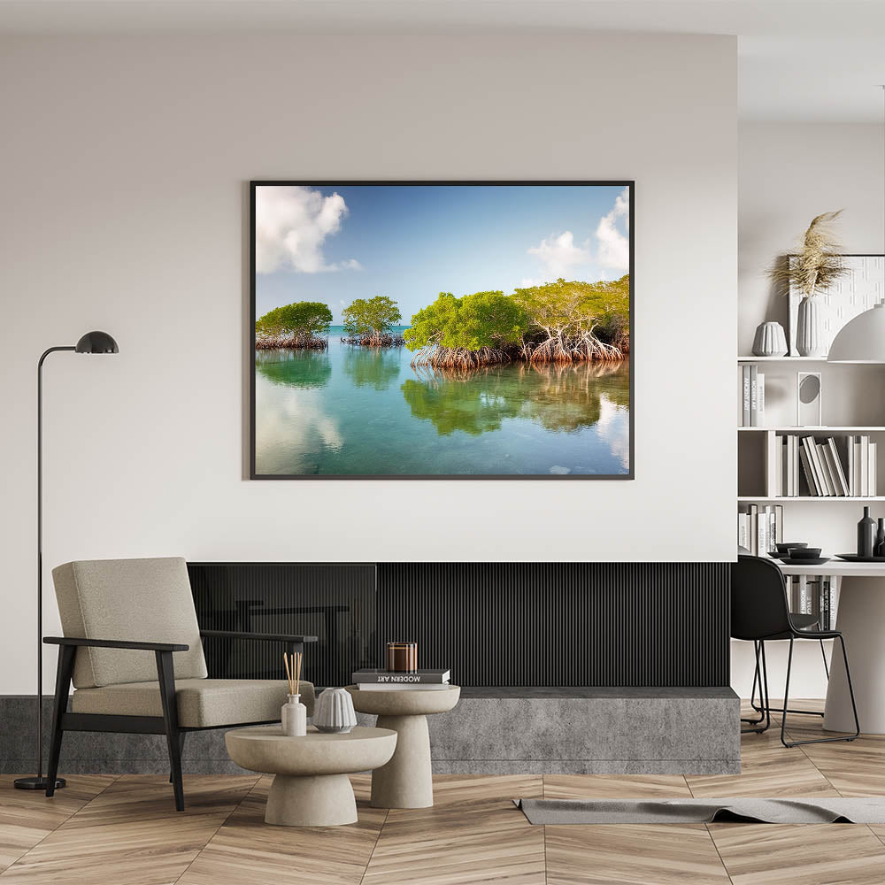 • Tranquil tropical scenery: A stunning Florida Keys canvas print showcasing mangroves, still waters, and a peaceful coastal setting.
