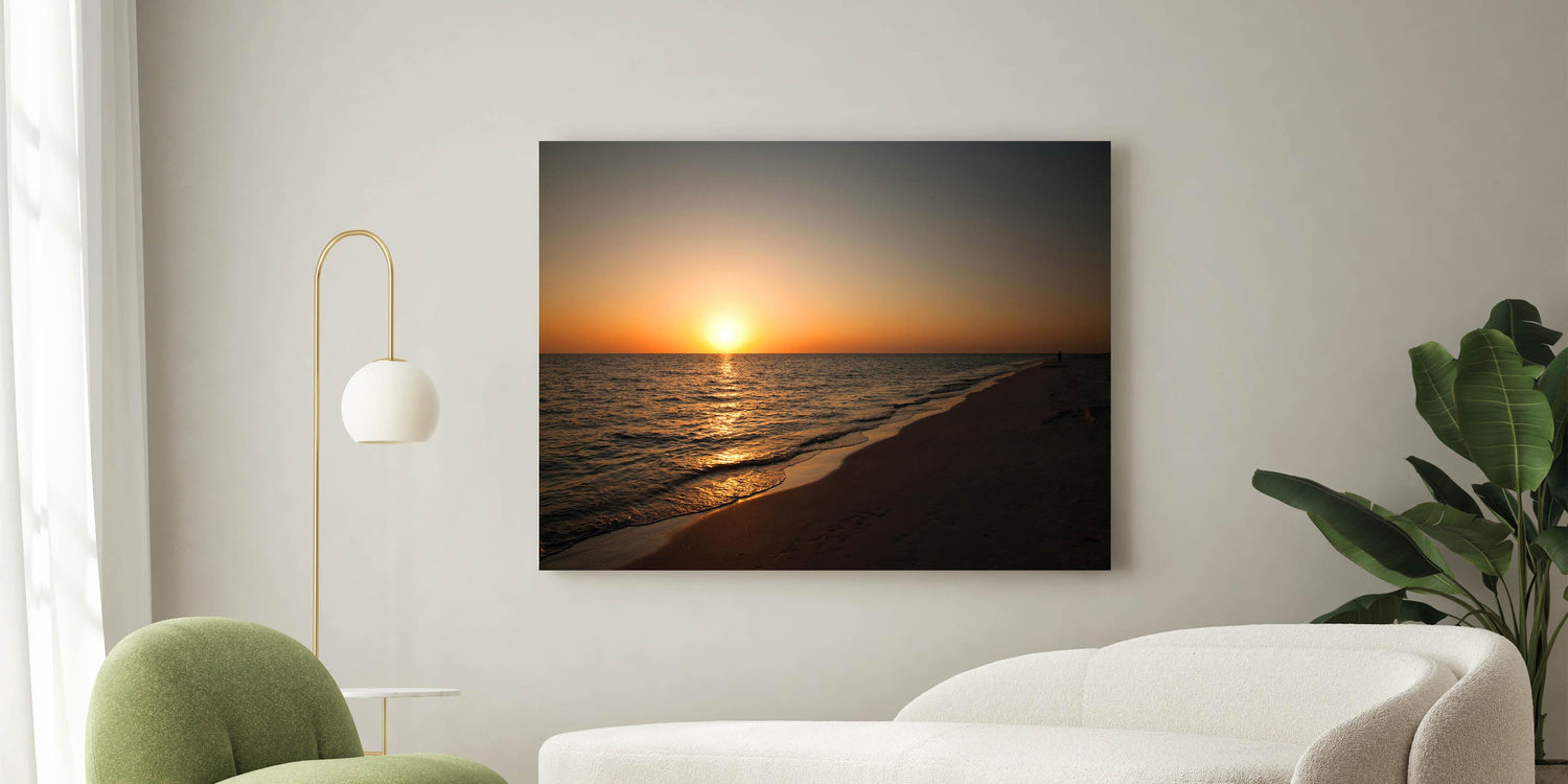Bring the beauty of a serene Marco Island sunset into your home with this stunning piece of coastal wall art. Capturing the peaceful shoreline as the golden sun sets over the horizon, this artwork perfectly embodies the tranquil ambiance of a Florida beach evening. Available in multiple materials, from stretched canvas to acrylic glass, this piece is perfect for adding a calming coastal touch to your space.