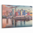 Celebrate the vibrant beauty of downtown Tampa with this stunning skyline reflection art. Featuring the iconic city buildings reflected in the calm waters, this artwork beautifully captures the city's architectural charm and natural surroundings. The warm, soft colors of the sunset blend seamlessly with the vibrant reflections, creating a visually dynamic piece perfect for modern or coastal decor. This Tampa cityscape art adds a touch of elegance to any living room, bedroom, or office, and will be a conversation piece in any space.