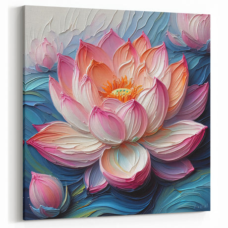 • Stretched canvas wall art showcasing a vibrant floral botanical design, featuring rich colors and intricate details, ideal for home decor enhancement.