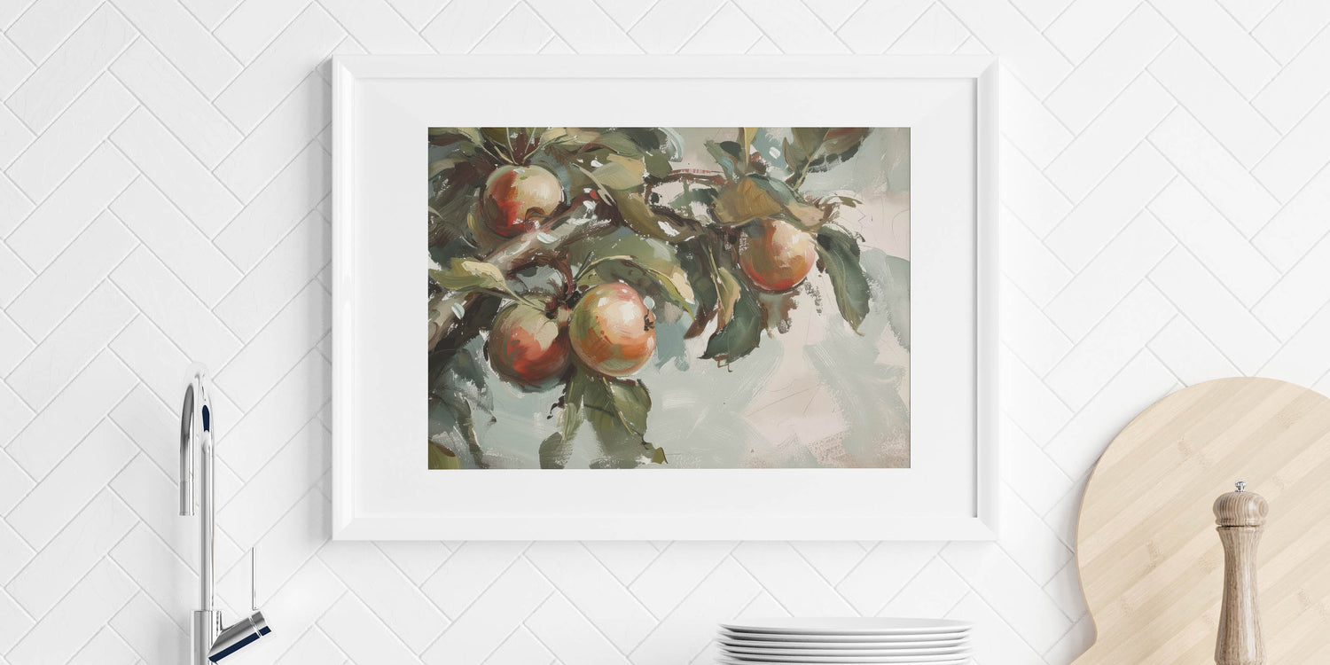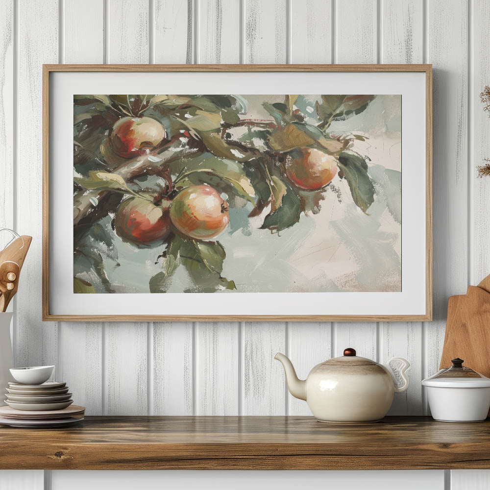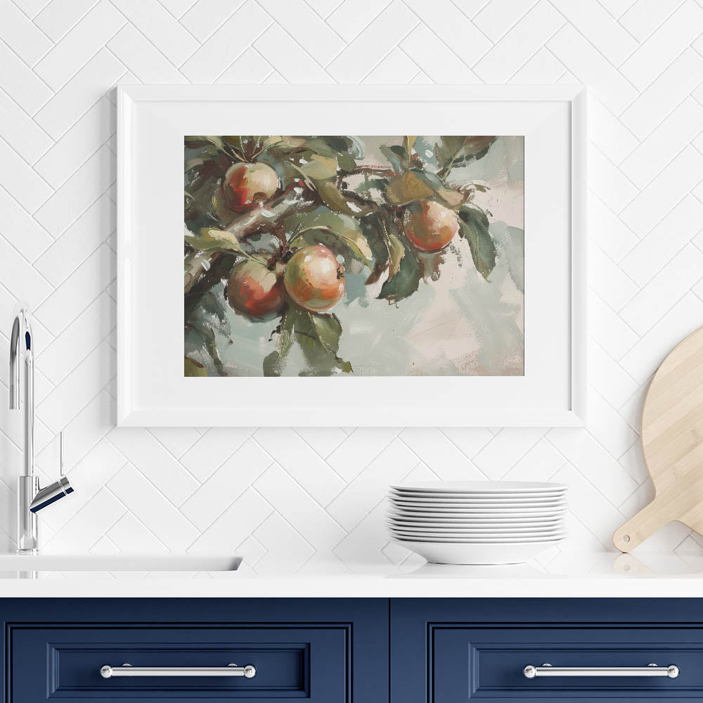 Whether you're looking for fruit art prints, fruit illustration prints, or a charming apple orchard painting, this apple tree fruit wall art will add warmth and natural beauty to your space.