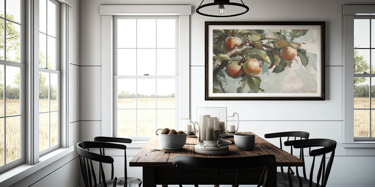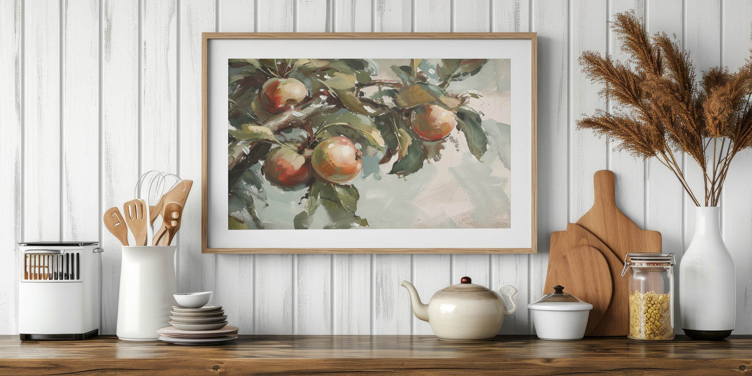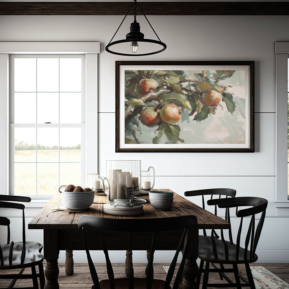 Whether you're looking for fruit art prints, fruit illustration prints, or a charming apple orchard painting, this apple tree fruit wall art will add warmth and natural beauty to your space.