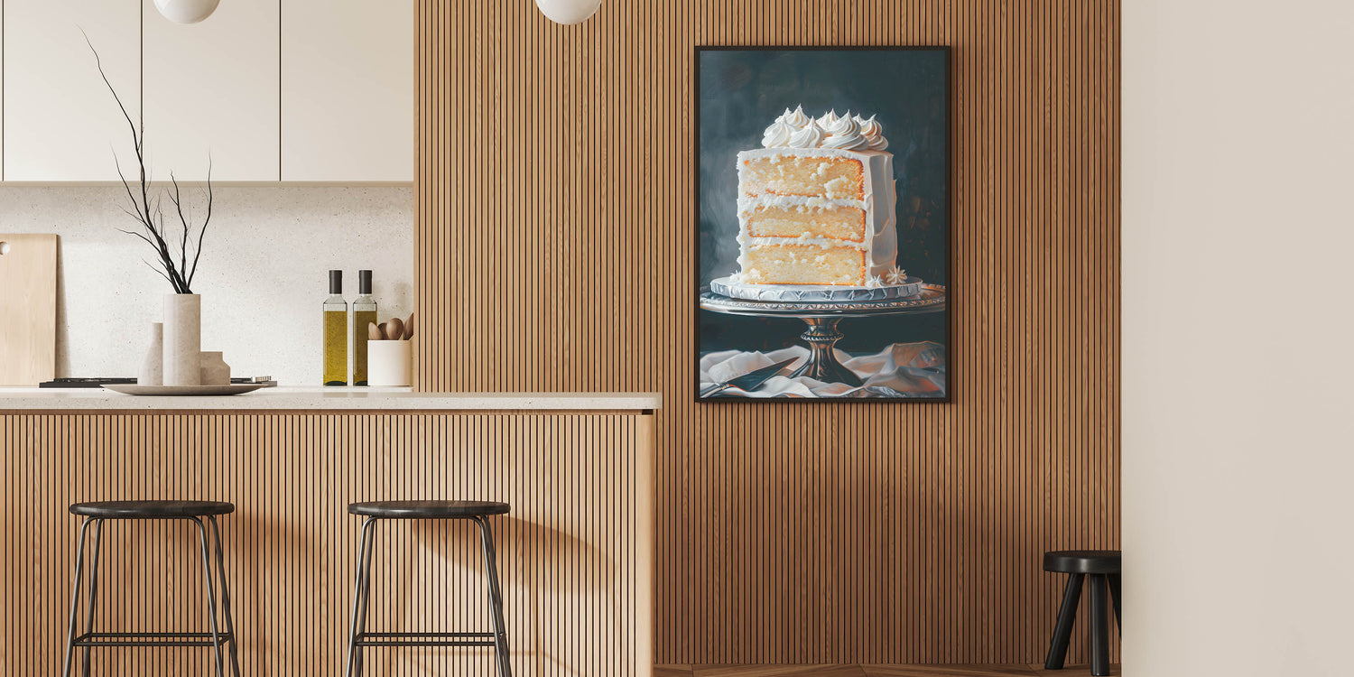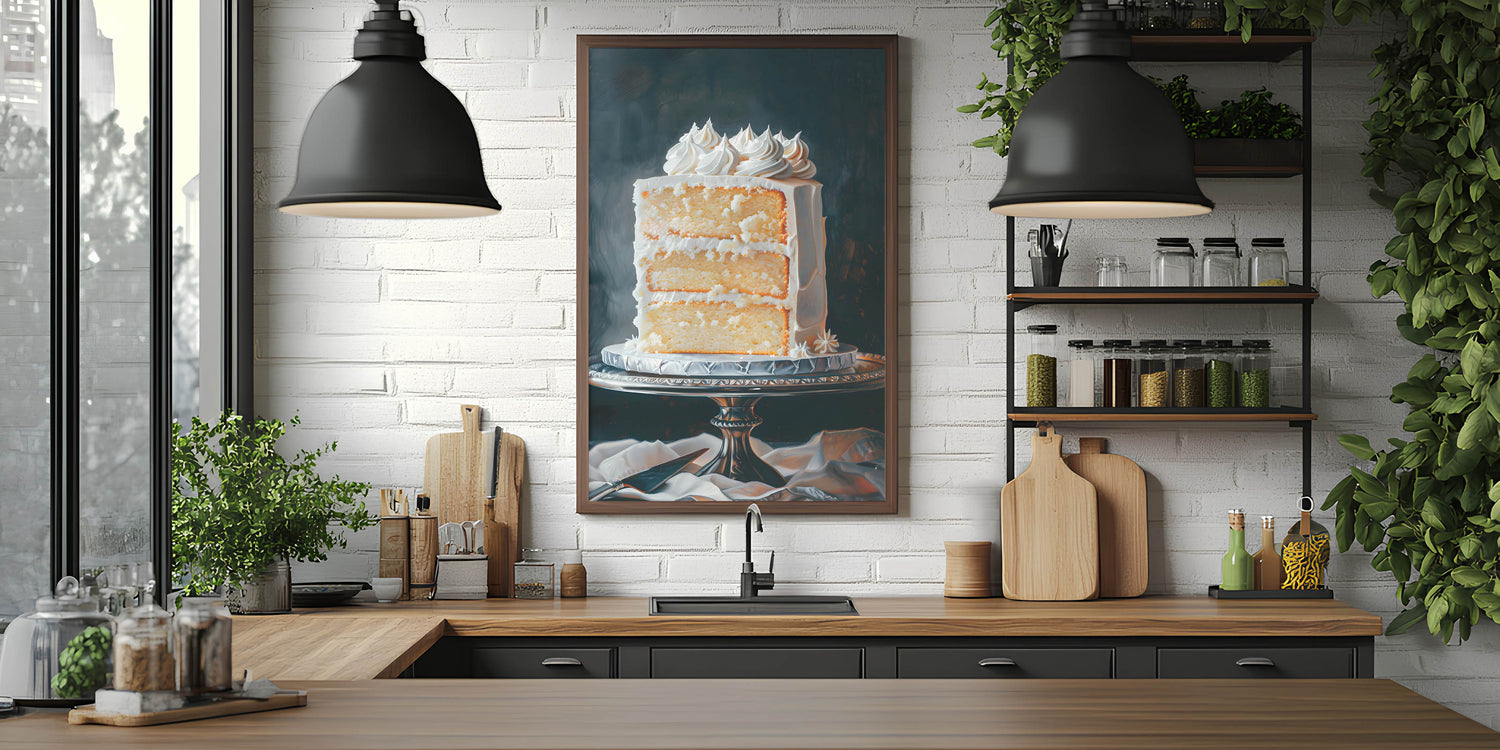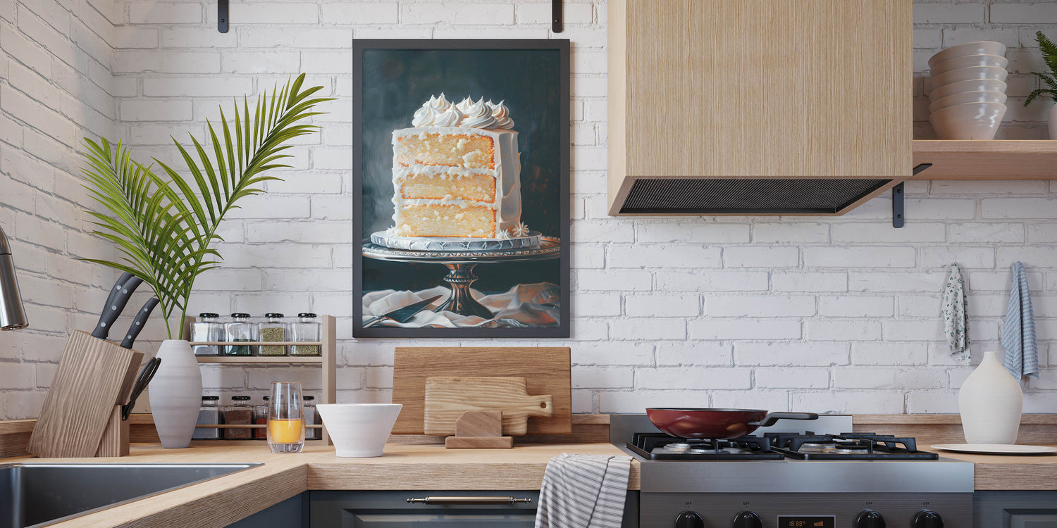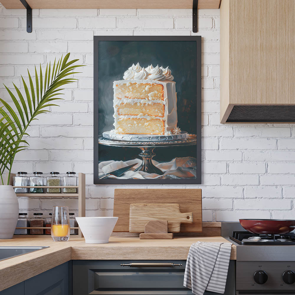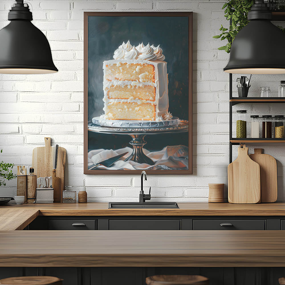 Elegant Vanilla Cake Bakery Art Prints – Dessert Kitchen Decor